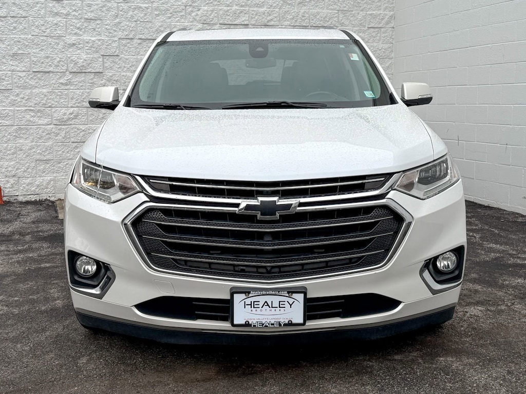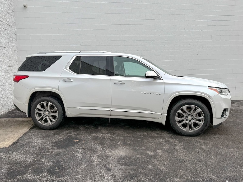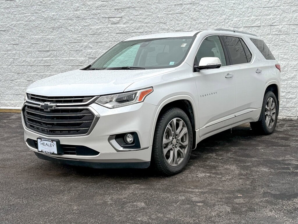 Iridescent Pearl Tricoat 2019 Chevrolet Traverse Premier AWD 9-Speed Automatic 3.6L V6 SIDI VVT AWD, 10 Speakers, 1st & 2nd Row All-Weather Floor Mats, 3.49 Axle Ratio, 3rd Row All-Weather Floor Mats, 3rd row seats: split-bench, 4-Wheel Disc Brakes, 7-Passenger Seating (2-2-3 Seating Configuration), ABS brakes, Air Conditioning, All-Weather Cargo Mat (LPO), Alloy wheels, AM/FM radio: SiriusXM, Apple CarPlay/Android Auto, Auto High-beam Headlights, Auto-dimming door mirrors, Auto-dimming Rear-View mirror, Automatic temperature control, Bose Premium 10-Speaker Audio System Feature, Brake assist, Bumpers: body-color, Compass, Delay-off headlights, Driver door bin, Driver vanity mirror, Dual front impact airbags, Dual front side impact airbags, Dual SkyScape 2-Panel Power Sunroof, Electronic Stability Control, Emergency communication system, Four wheel independent suspension, Front anti-roll bar, Front Bucket Seats, Front Center Armrest, Front dual zone A/C, Front fog lights, Front License Plate Bracket Mounting Package, Front reading lights, Fully automatic headlights, Garage door transmitter, Heated door mirrors, Heated front seats, Heated rear seats, Heated steering wheel, Heavy-Duty Cooling System, Illuminated entry, Interior Protection Package (LPO), Low tire pressure warning, Memory seat, Navigation System, Occupant sensing airbag, Outside temperature display, Overhead airbag, Overhead console, Painted Body-Color Front/Rear Splash Guards (LPO), Panic alarm, Passenger door bin, Passenger vanity mirror, Perforated Leather-Appointed Seat Trim, Power door mirrors, Power driver seat, Power Liftgate, Power passenger seat, Power steering, Power windows, Preferred Equipment Group 1LZ, Premium audio system: Chevrolet MyLink, Radio data system, Radio: Chevrolet Infotainment AM/FM Stereo w/Navigation, Rear air conditioning, Rear anti-roll bar, Rear reading lights, Rear window defroster, Rear window wiper, Remote keyless entry, Roof rack: rails only, Security system, SiriusXM Radio, Speed control, Speed-sensing steering, Spoiler, Steering wheel memory, Steering wheel mounted audio controls, Tachometer, Telescoping steering wheel, Tilt steering wheel, Traction control, Trip computer, Turn signal indicator mirrors, Variably intermittent wipers, Ventilated front seats, Voltmeter, Wheels: 20 Argent Metallic Machine Faced Aluminum, AWD.