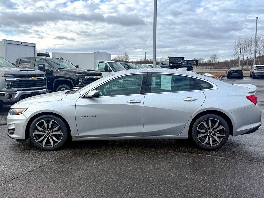 Silver Ice Metallic 2021 Chevrolet Malibu RS FWD CVT 1.5L DOHC 18 Aluminum Wheels, 4-Wheel Disc Brakes, 6 Speakers, 6-Speaker Audio System Feature, 6-Way Manual Front Passenger Seat Adjuster, 8-Way Power Driver Seat Adjuster, ABS brakes, Air Conditioning, All-Weather Floor Mats, Alloy wheels, AM/FM radio, Brake assist, Bumpers: body-color, Compass, Delay-off headlights, Driver door bin, Driver vanity mirror, Dual front impact airbags, Dual front side impact airbags, Electronic Stability Control, Emergency communication system: OnStar and Chevrolet connected services capable, Exterior Parking Camera Rear, Four wheel independent suspension, Front anti-roll bar, Front Bucket Seats, Front Center Armrest, Front License Plate Bracket, Front reading lights, Fully automatic headlights, Illuminated entry, Knee airbag, Low tire pressure warning, Occupant sensing airbag, Outside temperature display, Overhead airbag, Overhead console, Panic alarm, Passenger door bin, Passenger vanity mirror, Power door mirrors, Power Driver Lumbar Control Seat Adjuster, Power driver seat, Power steering, Power windows, Preferred Equipment Group 1SP, Premium audio system: Chevrolet Infotainment 3, Premium Cloth Seat Trim, Radio data system, Radio: Chevrolet Infotainment 3 System, Rear anti-roll bar, Rear side impact airbag, Rear window defroster, Remote keyless entry, Remote Vehicle Starter System, Security system, Speed control, Split folding rear seat, Spoiler, Steering wheel mounted audio controls, Tachometer, Telescoping steering wheel, Tilt steering wheel, Traction control, Trip computer, Variably intermittent wipers, Voltmeter, Wireless Apple CarPlay/Android Auto, Wireless Apple CarPlay/Wireless Android Auto.