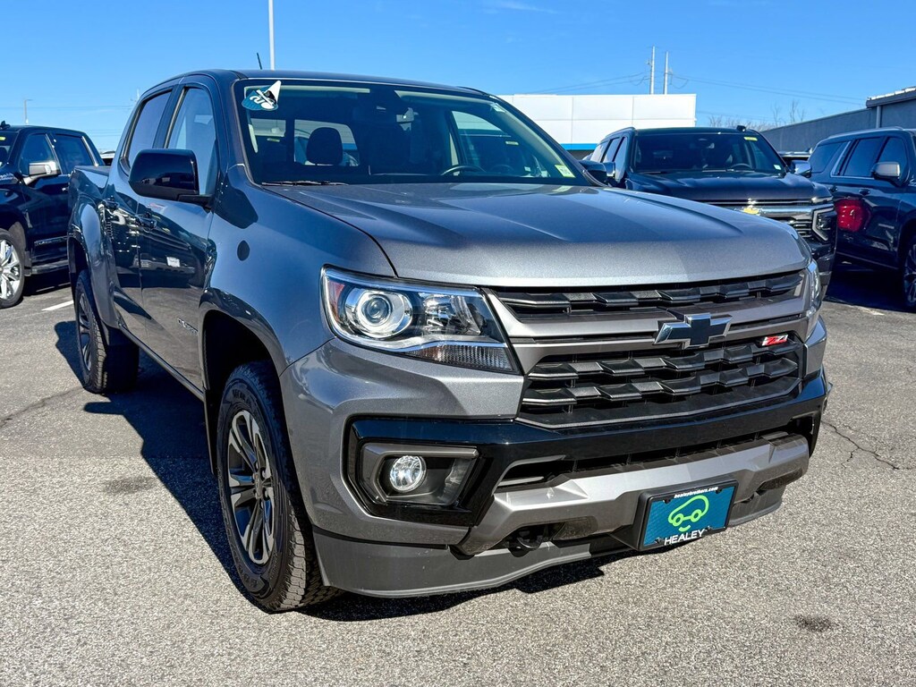 Certified. Satin Steel Metallic 2022 Chevrolet Colorado Z71 4WD 8-Speed Automatic V6 Forward Collision Alert, Heavy-Duty Trailering Package, Lane Departure Warning System, Safety Package, 3.42 Rear Axle Ratio, 4-Wheel Disc Brakes, 6 Speakers, 6-Speaker Audio System Feature, ABS brakes, Air Conditioning, Alloy wheels, AM/FM radio: SiriusXM, Apple CarPlay/Android Auto, Auto-dimming Rear-View mirror, Automatic temperature control, Bumpers: body-color, Cloth/Leatherette Seat Trim, Compass, Delay-off headlights, Driver 6-Way Power Seat Adjuster, Driver door bin, Driver vanity mirror, Dual front impact airbags, Dual front side impact airbags, Electronic Stability Control, Exterior Parking Camera Rear, Front & Rear Splash Guards, Front anti-roll bar, Front Bucket Seats, Front Center Armrest, Front fog lights, Front License Plate Kit, Front reading lights, Front wheel independent suspension, Fully automatic headlights, HD Radio, Heated door mirrors, Heated steering wheel, Hitch Guidance, Illuminated entry, Integrated Trailer Brake Controller, Low tire pressure warning, Not Equipped w/Heated Front Seats, Not Equipped w/Rear Park Assist, Occupant sensing airbag, Outside temperature display, Overhead airbag, Overhead console, Panic alarm, Passenger door bin, Passenger vanity mirror, Power door mirrors, Power Driver Lumbar Control Seat Adjuster, Power driver seat, Power steering, Power windows, Preferred Equipment Group 4Z7, Premium audio system: Chevrolet Infotainment 3 Plus, Radio data system, Radio: Chevrolet Infotainment 3 Plus System, Rear reading lights, Rear seat center armrest, Rear step bumper, Rear window defroster, Remote keyless entry, Security system, SiriusXM Radio, Speed control, Speed-sensing steering, Steering wheel mounted audio controls, Tachometer, Telescoping steering wheel, Tilt steering wheel, Tow/Haul Mode, Traction control, Trip computer, Ultrasonic Rear Park Assist, Variably intermittent wipers, Wheels: 17 x 8 Bright Machined Aluminum, Wireless Charging for Compatible Cell Phones, One Owner, Forward Collision Alert, Heavy-Duty Trailering Package, Lane Departure Warning System, Safety Package.