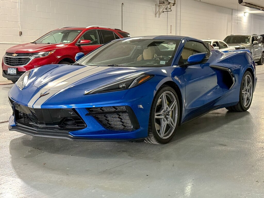 $98k original MSRP!! Elkhart Lake Blue Metallic 2022 Chevrolet Corvette Stingray 3LT RWD 8 Speed Dual Clutch 6.2L V8 Electronic Limited-Slip Differential, Heavy-Duty Cooling System, Performance Exhaust w/Stainless-Steel Tips, Performance Rear Axle Ratio, Rear Z51 Spoiler, Z51 Performance Brakes, Z51 Performance Package, Z51 Performance Suspension, 14 Speakers, 2 Cargo Nets, 4-Wheel Disc Brakes, 8-Way Power Driver Seat Adjuster, 8-Way Power Passenger Seat Adjuster, ABS brakes, Air Conditioning, Alloy wheels, AM/FM radio: SiriusXM, Apple CarPlay/Android Auto, Auto-dimming door mirrors, Auto-dimming Rear-View mirror, Automatic temperature control, Battery Protection Package, Black Composite Rocker Extensions (LPO), Bose Performance Series Sound System w/14 Speakers, Brake assist, Bumpers: body-color, Carbon Fiber Interior Trim, Compass, Convertible HardTop, Convertible roof lining, Convertible Top w/Carbon Flash Nacelles, Custom Leather Wrapped Interior Package, Delay-off headlights, Driver door bin, Driver Power Bolster Seat Adjuster, Driver vanity mirror, Dual front impact airbags, Dual front side impact airbags, Edge Yellow-Painted Calipers, Electrical Theft Deterrent System, Electronic Stability Control, Emergency communication system: OnStar and Chevrolet connected services capable, Four wheel independent suspension, Front anti-roll bar, Front Bucket Seats, Front Center Armrest, Front dual zone A/C, Front License Plate Bracket, Front Lift Adjustable Height w/Memory, Front reading lights, Fully automatic headlights, Garage door transmitter, Glass rear window, GT2 Bucket Seats, HD Front & Rear Vision Cameras, HD Radio, Head-Up Display, Heads-Up Display, Heated & Vented Driver & Passenger Seats, Heated door mirrors, Heated front seats, Heated Steering Wheel, Heated steering wheel, Illuminated entry, Integrated roll-over protection, Leather Shift Knob, Leather steering wheel, Low tire pressure warning, Memory Driver & Passenger Convenience Package, Memory seat, Napa Lthr Seating Surfaces w/Perforated Inserts, Navigation System, Occupant sensing airbag, Outside temperature display, Overhead console, Panic alarm, Passenger door bin, Passenger Power Bolster Seat Adjuster, Passenger vanity mirror, Performance Data & Video Recorder, Performance Traction Management, Power convertible roof, Power door mirrors, Power Driver Lumbar Control Seat Adjuster, Power driver seat, Power Passenger Lumbar Control Seat Adjuster, Power passenger seat, Power steering, Power windows, Power-Adjustable Outside Heated Mirrors, Preferred Equipment Group 3LT, Premium audio system: Chevrolet Infotainment 3 Premium, Radio data system, Radio: Chevrolet Infotainment 3 Premium System, Rear anti-roll bar, Rear Cross Traffic Alert, Rear Park Assist, Rear Parking Sensors, Rear window defroster, Remote keyless entry, Security system, Set of Premium Leather Weekend/Travel Bags (LPO), Side Blind Zone Alert, SiriusXM Radio, Speed control, Speed-sensing steering, Sport steering wheel, Steering wheel memory, Steering wheel mounted audio controls, Sterling Silver Dual Racing Stripes, Sueded Microfiber-Wrapped Upper Interior Trim Pkg, Tachometer, Telescoping steering wheel, Tilt steering wheel, Traction control, Trip computer, Turn signal indicator mirrors, Universal Home Remote, Variably intermittent wipers, Vehicle Inclination Theft Deterrent Sensor, Vehicle Interior Movement Theft Deterrent Sensor, Ventilated front seats, Voltmeter, Wheels: 19 x 8.5 Fr/20 x 11 Rr Bright Silver, Wireless Charging for Devices, Z51 Perf Suspension w/Magnetic Selective Ride Cntrl, Electronic Limited-Slip Differential, Heavy-Duty Cooling System, Performance Exhaust w/Stainless-Steel Tips, Performance Rear Axle Ratio, Rear Z51 Spoiler, Z51 Performance Brakes, Z51 Performance Package, Z51 Performance Suspension.