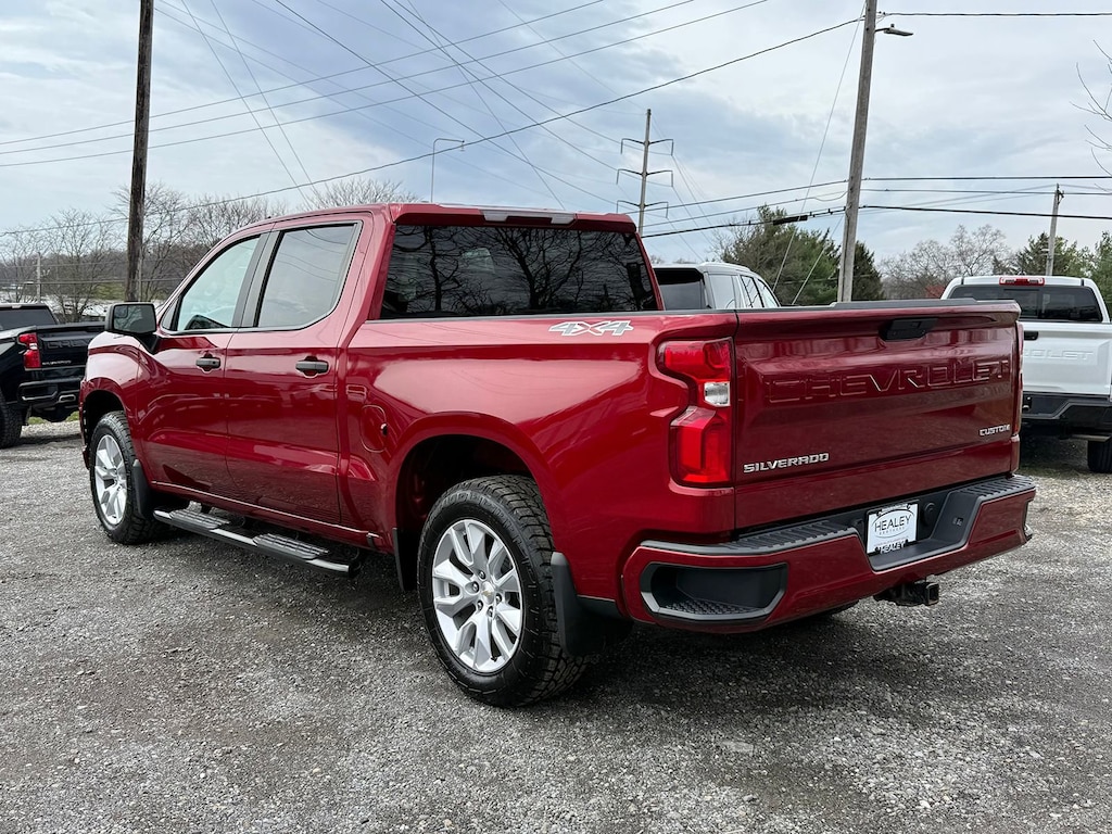 Cherry Red Tintcoat 2022 Chevrolet Silverado 1500 LTD Custom 4WD 8-Speed Automatic 2.7L Turbo 10-Way Power Driver Seat w/Lumbar, 120-Volt Bed Mounted Power Outlet, 120-Volt Instrument Panel Power Outlet, 3.42 Rear Axle Ratio, 3.5 Monochromatic Display Driver Info Center, 4-Wheel Disc Brakes, 40/20/40 Front Split Bench Seat, 6 Speakers, 6-Speaker Audio System, ABS brakes, Air Conditioning, Alloy wheels, AM/FM radio: SiriusXM, Apple CarPlay/Android Auto, Bluetooth® For Phone, Body Color Grille, Brake assist, Bumpers: body-color, Chevrolet Connected Access Capable, Cloth Seat Trim, Color-Keyed Carpeting Floor Covering, Compass, Custom Convenience Package, Custom Value Package, Deep-Tinted Glass, Delay-off headlights, Driver door bin, Driver vanity mirror, Dual front impact airbags, Dual front side impact airbags, Electric Rear-Window Defogger, Electronic Cruise Control, Electronic Stability Control, EZ Lift Power Lock & Release Tailgate, Front anti-roll bar, Front Center Armrest w/Storage, Front Frame-Mounted Black Recovery Hooks, Front License Plate Kit, Front reading lights, Front Rubberized Vinyl Floor Mats, Front wheel independent suspension, Fully automatic headlights, Heated door mirrors, Heavy Duty Suspension, Hitch Guidance, Illuminated entry, Infotainment Package, Integrated Trailer Brake Controller, LED Cargo Area Lighting, Low tire pressure warning, Manual Tilt Wheel Steering Column, Molded Black Splash Guards (LPO), Occupant sensing airbag, OnStar & Chevrolet Connected Services Capable, Outside temperature display, Overhead airbag, Overhead console, Panic alarm, Passenger door bin, Passenger vanity mirror, Power Door Locks, Power door mirrors, Power Front Windows w/Driver Express Up/Down, Power Front Windows w/Passenger Express Down, Power Rear Windows w/Express Down, Power steering, Power windows, Preferred Equipment Group 1CX, Premium audio system: Chevrolet Infotainment 3, Radio data system, Radio: Chevrolet Infotainment 3 System, Rear 60/40 Folding Bench Seat (Folds Up), Rear reading lights, Rear Rubberized-Vinyl Floor Mats, Rear step bumper, Rear window defroster, Remote Keyless Entry, Remote keyless entry, Remote Vehicle Starter System, Security system, SiriusXM Radio, Speed control, Speed-sensing steering, Split folding rear seat, Standard Tailgate, Tachometer, Theft Deterrent System (Unauthorized Entry), Tilt steering wheel, Traction control, Trailering Package, Trip computer, Variably intermittent wipers, Voltmeter, Wheels: 20 x 9 Bright Silver Painted Aluminum, Wi-Fi Hot Spot Capable.