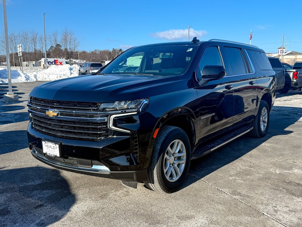 Black 2022 Chevrolet Suburban LT 4WD 10-Speed Automatic with Overdrive EcoTec3 5.3L V8 10-Way Power Driver & Passenger Seat Adjusters, 1st & 2nd Row Color-Keyed Carpeted Floor Mats, 2nd Row Manual Bucket Seats, 3.23 Rear Axle Ratio, 3rd row seats: split-bench, 4-Wheel Disc Brakes, 9 Speakers, ABS brakes, Air Conditioning, Alloy wheels, AM/FM radio: SiriusXM with 360L, Apple CarPlay/Android Auto, Auto High-beam Headlights, Auto-Dimming Inside Rear-View Mirror, Auto-dimming Rear-View mirror, Automatic Stop/Start, Automatic temperature control, Bose 9-Speaker Stereo Audio System Feature, Brake assist, Bright Front & Rear Door Sill Plates, Bumpers: body-color, Color-Keyed Carpeting Floor Covering, Compass, Delay-off headlights, Driver & Front Outboard Passenger Airbags, Driver door bin, Driver vanity mirror, Dual front impact airbags, Dual front side impact airbags, Electronic Stability Control, Emergency communication system: OnStar and Chevrolet connected services capable, Enhanced Driver Information Center, Floor Console w/Storage Area, Four wheel independent suspension, Front & Rear Park Assist, Front anti-roll bar, Front Bucket Seats, Front Center Armrest, Front dual zone A/C, Front reading lights, Fully automatic headlights, Garage door transmitter, Hands-Free Rear Power Programmable Liftgate, Heated door mirrors, Heated Driver & Front Passenger Seats, Heated front seats, Illuminated entry, Infotainment Display, Leather steering wheel, Leather-Appointed Seating, Leather-Wrapped Steering Wheel, LED Daytime Running Lamps, License Plate Front Mounting Package, Low tire pressure warning, Memory seat, Memory Settings For Driver, Navigation System, Not Equipped w/Front & Rear Park Assist, Not Equipped w/Steering Column Lock, Occupant sensing airbag, Outside temperature display, Overhead airbag, Overhead console, Panic alarm, Passenger door bin, Passenger vanity mirror, Power door mirrors, Power driver seat, Power Liftgate, Power passenger seat, Power steering, Power windows, Preferred Equipment Group 1LT, Premium audio system: Chevrolet Infotainment 3 Premium, Premium Smooth Ride Suspension, Radio: Chevrolet Infotainment 3 Premium System, Rain sensing wipers, Rear air conditioning, Rear anti-roll bar, Rear reading lights, Rear seat center armrest, Rear window defroster, Rear window wiper, Remote keyless entry, Remote Start, Roof rack: rails only, Security system, SiriusXM Radio w/360L, Speed control, Speed-sensing steering, Split folding rear seat, Spoiler, Start/Stop System Disable Button, Steering wheel mounted audio controls, Tachometer, Telescoping steering wheel, Tilt steering wheel, Traction control, Trip computer, Universal Home Remote, Variably intermittent wipers, Voltmeter, Wheels: 18 x 8.5 Bright Silver Painted Aluminum, Wireless Charging.