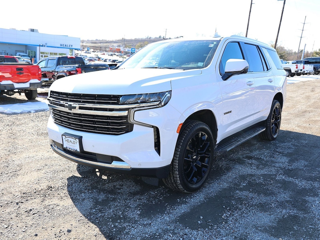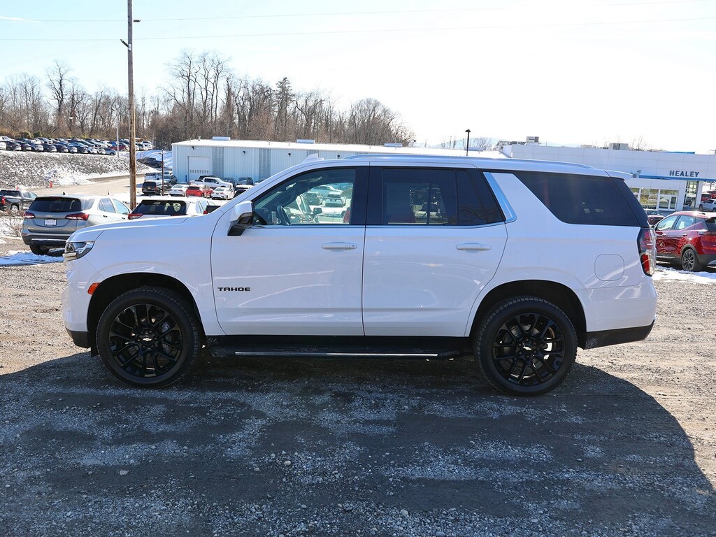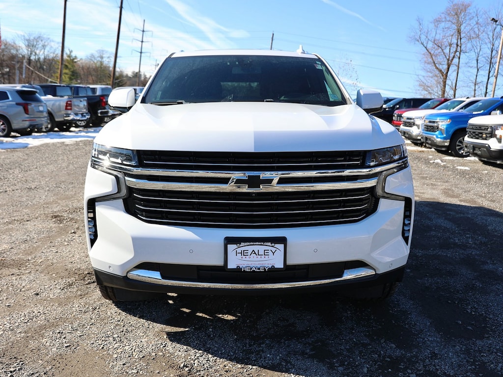 Summit White 2022 Chevrolet Tahoe LT 4WD 10-Speed Automatic with Overdrive EcoTec3 5.3L V8 10-Way Power Driver & Passenger Seat Adjusters, 1st & 2nd Row Color-Keyed Carpeted Floor Mats, 2-Speed Active Electronic AutoTrac Transfer Case, 2nd Row Pwr Release 60/40 Split-Folding Bench Seat, 3.23 Rear Axle Ratio, 3rd Row 60/40 Power-Folding Split-Bench Seat, 3rd row seats: split-bench, 4-Wheel Disc Brakes, 9 Speakers, ABS brakes, Advanced Trailering Package, Air Conditioning, Alloy wheels, AM/FM radio: SiriusXM with 360L, Apple CarPlay/Android Auto, Auto High-beam Headlights, Auto-Dimming Inside Rear-View Mirror, Auto-dimming Rear-View mirror, Automatic Stop/Start, Automatic temperature control, Black Exhaust Tip (LPO), Black Name Plates (LPO), Bose 9-Speaker Stereo Audio System Feature, Brake assist, Bright Front & Rear Door Sill Plates, Bumpers: body-color, Color-Keyed Carpeting Floor Covering, Compass, Delay-off headlights, Driver & Front Outboard Passenger Airbags, Driver Alert Package, Driver door bin, Driver vanity mirror, Dual front impact airbags, Dual front side impact airbags, Dual-Pane Power Panoramic Sunroof, Electronic Stability Control, Emergency communication system: OnStar and Chevrolet connected services capable, Enhanced Driver Information Center, Extra Capacity Cooling System, Floor Console w/Storage Area, Four wheel independent suspension, Front & Rear Black Bowtie Emblems (LPO), Front anti-roll bar, Front Bucket Seats, Front Center Armrest, Front dual zone A/C, Front High-Back Reclining Bucket Seats, Front reading lights, Fully automatic headlights, Garage door transmitter, Hands-Free Rear Power Programmable Liftgate, HD Surround Vision, Heated 2nd Row Outboard Seats, Heated door mirrors, Heated Driver & Front Passenger Seats, Heated front seats, Heated Steering Wheel, Hitch Guidance w/Hitch View, Illuminated entry, Infotainment Display, Integrated Trailer Brake Controller, Lane Change Alert w/Side Blind Zone Alert, Leather steering wheel, Leather-Appointed Seat Trim, Leather-Wrapped Steering Wheel, LED Daytime Running Lamps, License Plate Front Mounting Package, Low tire pressure warning, LT Signature Package, Luxury Package, Max Trailering Package, Memory seat, Memory Settings, Memory Settings for Driver, Navigation System, Not Equipped w/Steering Column Lock, Occupant sensing airbag, Outside Heated Power-Adjustable Mirrors, Outside temperature display, Overhead airbag, Overhead console, Panic alarm, Passenger door bin, Passenger vanity mirror, Power door mirrors, Power driver seat, Power Liftgate, Power passenger seat, Power Release 2nd Row Bucket Seats, Power steering, Power Tilt & Telescopic Steering Column, Power windows, Preferred Equipment Group 1LT, Premium audio system: Chevrolet Infotainment System 3, Premium Smooth Ride Suspension, Radio: Chevrolet Infotainment 3 Premium System, Rain sensing wipers, Rear air conditioning, Rear anti-roll bar, Rear Cross Traffic Alert, Rear Pedestrian Alert, Rear reading lights, Rear seat center armrest, Rear Seat Media System (DISC), Rear window defroster, Rear window wiper, Remote keyless entry, Remote Start, Roof rack: rails only, Security system, SiriusXM Radio w/360L, Smart Trailer Integration Indicator, Speed control, Speed-sensing steering, Split folding rear seat, Spoiler, Start/Stop System Disable Button, Steering wheel mounted audio controls, Tachometer, Telescoping steering wheel, Tilt steering wheel, Traction control, Trip computer, Universal Home Remote, Variably intermittent wipers, Voltmeter, Wheels: 18 x 8.5 Bright Silver Painted Aluminum, Wheels: 22 Multi-Spoke Gloss Black (LPO), Wheels: 22 Multi-Spoke Gloss Black (LPO) (SRV), Wheels: 22 x 9 Steel Interim (LPO), Wireless Charging.
