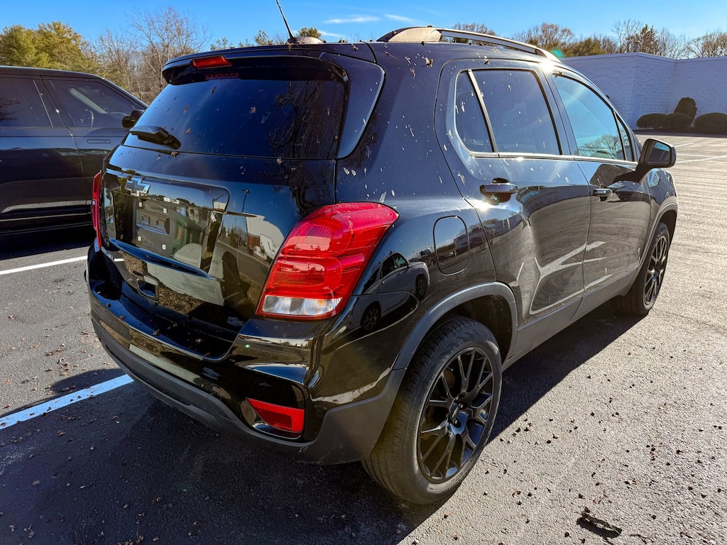 Mosaic Black Metallic 2022 Chevrolet Trax LT AWD 6-Speed Automatic Turbo 1.4L VVT DOHC 4-Cylinder DI SIDI 16 Aluminum Wheels, 2 Spare Keys Key System, 2 USB Ports w/Auxiliary Input Jack, 2-Way Manual Front Passenger Seat Adjuster, 3-Spoke Leather-Wrapped Steering Wheel, 3.53 Final Drive Axle Ratio, 4-Way Manual Driver Seat Adjuster, 4-Wheel Disc Brakes, 6 Speakers, 6-Speaker Audio System Feature, 6-Way Power Driver Seat Adjuster, ABS brakes, Air Conditioning, All-Wheel Drive Chassis, Alloy wheels, AM/FM radio: SiriusXM, Apple CarPlay/Android Auto, Brake assist, Bumpers: body-color, Compass, Delay-off headlights, Deluxe Cloth/Leatherette Seat Trim, Driver door bin, Driver vanity mirror, Driver's Seat Mounted Armrest, Dual front impact airbags, Dual front side impact airbags, Electronic Stability Control, Emergency communication system: OnStar and Chevrolet connected services capable, Exterior Parking Camera Rear, Front anti-roll bar, Front Bucket Seats, Front Bucket Seats w/Driver Power Lumbar, Front License Plate Bracket, Front reading lights, Front wheel independent suspension, Fully automatic headlights, Heated door mirrors, Illuminated entry, Keyless Open, Keyless Start, Knee airbag, Low tire pressure warning, LT Convenience Package, Midnight Edition, Occupant sensing airbag, Outside temperature display, Overhead airbag, Panic alarm, Passenger door bin, Passenger vanity mirror, Power door mirrors, Power steering, Power windows, Preferred Equipment Group 1LT, Premium audio system: Chevrolet Infotainment 3, Radio data system, Radio: Chevrolet Infotainment 3 System, Rear seat center armrest, Rear side impact airbag, Rear window defroster, Rear window wiper, Remote keyless entry, Roof rack: rails only, Security system, SiriusXM Radio, Speed control, Split folding rear seat, Spoiler, Steering wheel mounted audio controls, Tachometer, Telescoping steering wheel, Tilt steering wheel, Traction control, Trip computer, Variably intermittent wipers, Wheels: 18 Gloss Black Aluminum.
