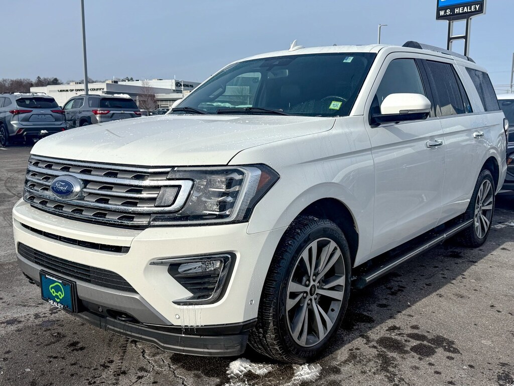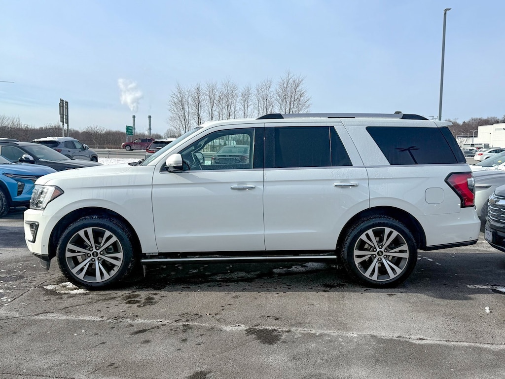 Certified. White 2021 Ford Expedition Limited 4WD 10-Speed Automatic EcoBoost 3.5L V6 GTDi DOHC 24V Twin Turbocharged 360-Degree Camera w/Split View, Enhanced Active Park Assist System, Equipment Group 302A High Package, LED Headlamps & Fog Lamps, Panoramic Vista Roof, Wheels: 22 6-Spoke Painted Machined-Face Aluminum, 12 Speakers, 3.31 Axle Ratio, 3rd row seats: split-bench, 4-Wheel Disc Brakes, ABS brakes, Adjustable pedals, Air Conditioning, Alloy wheels, AM/FM radio: SiriusXM, Auto High-beam Headlights, Auto-dimming door mirrors, Auto-dimming Rear-View mirror, Automatic temperature control, Brake assist, Bumpers: body-color, Compass, Delay-off headlights, Driver door bin, Driver vanity mirror, Dual front impact airbags, Dual front side impact airbags, Electronic Stability Control, Emergency communication system: SYNC 3 911 Assist, Exterior Parking Camera Rear, Four wheel independent suspension, Front anti-roll bar, Front Bucket Seats, Front Center Armrest, Front dual zone A/C, Front fog lights, Front reading lights, Fully automatic headlights, Garage door transmitter, Heated & Ventilated Leather Front Captain's Chairs, Heated door mirrors, Heated front seats, Heated rear seats, Heated steering wheel, Illuminated entry, Leather steering wheel, Low tire pressure warning, Memory seat, Navigation System, Occupant sensing airbag, Outside temperature display, Overhead airbag, Overhead console, Panic alarm, Passenger door bin, Passenger vanity mirror, Pedal memory, Power door mirrors, Power driver seat, Power Liftgate, Power passenger seat, Power steering, Power windows, Radio data system, Radio: B&O Sound System by Bang & Olufsen, Rain sensing wipers, Rear air conditioning, Rear anti-roll bar, Rear audio controls, Rear reading lights, Rear window defroster, Rear window wiper, Reclining 3rd row seat, Remote keyless entry, Roof rack: rails only, Security system, SiriusXM Satellite Radio, Speed control, Speed-sensing steering, Speed-Sensitive Wipers, Split folding rear seat, Steering wheel memory, Steering wheel mounted audio controls, SYNC 3 Communications & Entertainment System, Tachometer, Telescoping steering wheel, Tilt steering wheel, Traction control, Trip computer, Turn signal indicator mirrors, Variably intermittent wipers, Ventilated front seats, Voltmeter, Wheels: 18 Magnetic Met Painted Cast-Aluminum, Wheels: 20 Premium Dark Tarnish-Painted, 360-Degree Camera w/Split View, Enhanced Active Park Assist System, Equipment Group 302A High Package, LED Headlamps & Fog Lamps, Panoramic Vista Roof, Wheels: 22 6-Spoke Painted Machined-Face Aluminum.