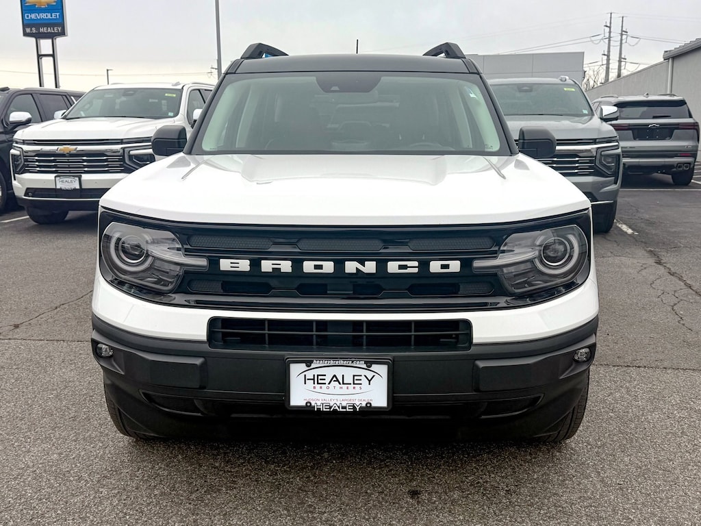 Oxford White 2024 Ford Bronco Sport Outer Banks 4WD 8-Speed Automatic 1.5L EcoBoost 3.80 Axle Ratio, 4-Wheel Disc Brakes, 6 Speakers, ABS brakes, Air Conditioning, Alloy wheels, AM/FM radio: SiriusXM, AM/FM Stereo, Auto High-beam Headlights, Auto-dimming Rear-View mirror, Automatic temperature control, Brake assist, Compass, Delay-off headlights, Driver door bin, Driver vanity mirror, Dual front impact airbags, Dual front side impact airbags, Electronic Stability Control, Emergency communication system: SYNC 3 911 Assist, Equipment Group 300A, Four wheel independent suspension, Front anti-roll bar, Front Bucket Seats, Front Center Armrest, Front dual zone A/C, Front fog lights, Front License Plate Bracket, Front reading lights, Fully automatic headlights, Heated door mirrors, Heated front seats, Heated steering wheel, Illuminated entry, Knee airbag, Low tire pressure warning, Memory seat, Occupant sensing airbag, Outside temperature display, Overhead airbag, Overhead console, Panic alarm, Passenger door bin, Passenger vanity mirror, Power door mirrors, Power driver seat, Power passenger seat, Power steering, Power windows, Premium-Trimmed Heated Sport Contour Bucket Seats, Radio data system, Rain sensing wipers, Rear anti-roll bar, Rear Parking Sensors, Rear reading lights, Rear seat center armrest, Rear window defroster, Rear window wiper, Remote keyless entry, Security system, SiriusXM, Speed control, Speed-sensing steering, Speed-Sensitive Wipers, Split folding rear seat, Steering wheel mounted audio controls, SYNC 3 Communications & Entertainment System, Tachometer, Telescoping steering wheel, Tilt steering wheel, Traction control, Trip computer, Variably intermittent wipers, Wheels: 18 Ebony Black-Painted Aluminum.Don't be tricked by below market priced vehicles that charge exorbitant documentation and prep fees. Our pricing is fair, concise and the only documentation fee charged is $175. Check our Google reviews and allow our customers to tell you where you should consider purchasing a pre-owned vehicle in the Tri-State area.