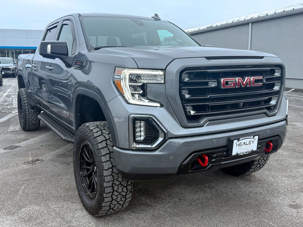 Satin Steel Metallic 2021 GMC Sierra 1500 AT4 4WD 10-Speed Automatic EcoTec3 6.2L V8 10-Way Power Driver Seat Adjuster w/Lumbar, 10-Way Power Passenger Seat Adjuster w/Lumbar, 12-Volt Rear Auxiliary Power Outlet, 120-Volt Bed Mounted Power Outlet, 120-Volt Instrument Panel Power Outlet, 170 Amp Alternator, 18 x 8.5 Machined Aluminum Wheels, 2 USB Ports, 2 USB Ports (1st Row), 220 Amp Alternator, 3.23 Rear Axle Ratio, 4-Wheel Disc Brakes, 4.2 Diagonal Color Display Driver Info Center, 4G LTE Wi-Fi Hotspot Capable, 6 Speakers, 6-Speaker Audio System Feature, 8 Driver Information Center, ABS brakes, Adaptive Cruise Control, Air Conditioning, Alloy wheels, AM/FM radio: SiriusXM with 360L, Apple CarPlay/Android Auto, AT4 Preferred Package, Auto-dimming door mirrors, Auto-dimming Rear-View mirror, Auto-Locking Rear Differential, Automatic Emergency Braking, Automatic temperature control, Auxiliary External Transmission Oil Cooler, Bed View Camera, Block heater, Body-Color Surround Grille, Brake assist, Bumpers: body-color, Color-Keyed Carpeting Floor Covering, Compass, Deep-Tinted Glass, Delay-off headlights, Driver Alert Package I, Driver Alert Package II, Driver door bin, Driver Memory, Driver vanity mirror, Dual front impact airbags, Dual front side impact airbags, Electric Rear-Window Defogger, Electrical Lock Control Steering Column, Electronic Stability Control, Engine Block Heater, Floor-Mounted Center Console, Following Distance Indicator, Forward Collision Alert, Front anti-roll bar, Front Bucket Seats, Front Center Armrest, Front dual zone A/C, Front fog lights, Front License Plate Kit, Front Pedestrian Braking, Front Prem Floor Liners w/Removable Carpet Insert, Front reading lights, Front wheel independent suspension, Fully automatic headlights, GMC Connected Access Capable, HD Rear Vision Camera, HD Surround Vision w/2 Trailer View Camera Provisions, Heated 2nd Row Outboard Seats, Heated door mirrors, Heated Driver & Front Outboard Passenger Seating, Heated front seats, Heated steering wheel, Heavy-Duty Air Filter, Hill Descent Control, Hitch Guidance, Hitch Guidance w/Hitch View, Illuminated entry, In-Vehicle Trailering App, Integrated Trailer Brake Controller, IntelliBeam Automatic High Beam On/Off, Keyless Open & Start, Lane Change Alert w/Side Blind Zone Alert, Lane Keep Assist w/Lane Departure Warning, LED Cargo Area Lighting, Low tire pressure warning, Manual Tilt-Wheel & Telescoping Steering Column, Memory seat, Multicolor 15 Diagonal Head-Up Display, Occupant sensing airbag, Off-Road Suspension, OnStar & GMC Connected Services Capable, Outside temperature display, Overhead airbag, Overhead console, Panic alarm, Passenger door bin, Passenger vanity mirror, Perforated Leather-Appointed Front Seat Trim, Perimeter Lighting, Power Door Locks, Power door mirrors, Power driver seat, Power Front Passenger Windows w/Express Up/Down, Power Front Windows w/Driver Express Up/Down, Power passenger seat, Power Rear Windows w/Express Down, Power Sliding Rear Window w/Rear Defogger, Power steering, Power Sunroof, Power windows, Preferred Equipment Group 4SB, Premium audio system: GMC Infotainment System, Premium Bose 7-Speaker Sound System, ProGrade Trailering System, Radio data system, Radio: Premium GMC Infotainment Sys w/Multi-Touch, Radio: Premium GMC Infotainment Sys w/Navigation, Rear Camera Mirror, Rear Cross Traffic Alert, Rear Dual USB Charging-Only Ports, Rear Prem Floor Liners w/Removable Carpet Insert, Rear reading lights, Rear seat center armrest, Rear step bumper, Rear Wheelhouse Liners, Rear window defroster, Red Recovery Hooks, Remote keyless entry, Remote Vehicle Starter System, Safety Alert Seat, Security system, SiriusXM w/360L, Speed control, Speed-sensing steering, Split folding rear seat, Spray-On Pickup Bed Liner w/AT4 Logo, Steering Wheel Audio Controls, Steering wheel mounted audio controls, Tachometer, Technology Package, Telescoping steering wheel, Thef