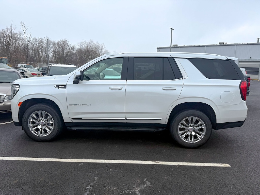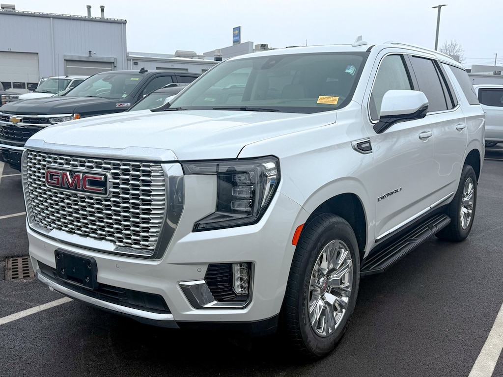 White Frost Tricoat 2022 GMC Yukon Denali 4WD 10-Speed Automatic with Overdrive 3.0L I6 Dual-Pane Panoramic Power Sunroof, Power Liftgate, 1.5 kW Heater/Defrost Air System, 14 Speakers, 15 Diagonal Multi-Color Head-Up Display, 2 Presets For Outside Rearview Mirrors, 250 Amps Alternator, 3 Years of GMC Connected Services, 3.23 Rear Axle Ratio, 3rd Row 60/40 Power-Folding Split-Bench Seat, 3rd row seats: split-bench, 4-Wheel Disc Brakes, 850 Cold-Cranking Amps Battery, ABS brakes, Adaptive suspension, Air Conditioning, Alloy wheels, AM/FM radio: SiriusXM with 360L, AM/FM Stereo, Apple CarPlay/Android Auto, Auto High-beam Headlights, Auto-dimming door mirrors, Auto-dimming Rear-View mirror, Auto-leveling suspension, Automatic Emergency Braking, Automatic Stop/Start, Automatic temperature control, Bodyside moldings, Bose 14-Speaker Surround w/CenterPoint, Brake assist, Bright Front & Rear Door Sill Plates, Bumpers: body-color, Chrome Door Handles w/Body-Color Strip, Compass, Delay-off headlights, Diesel B20 Fuel, Driver door bin, Driver vanity mirror, Dual Exhaust System, Dual front impact airbags, Dual front side impact airbags, Electronic Stability Control, Emergency communication system: OnStar and GMC Connected Services capable, Engine Block Heater, Floor Console, Following Distance Indicator, Forward Collision Alert, Four wheel independent suspension, Front & Rear Park Assist, Front anti-roll bar, Front Bucket Seats, Front Center Armrest, Front dual zone A/C, Front fog lights, Front Pedestrian Braking, Front reading lights, Fully automatic headlights, Galvano Bodyside Moldings, Garage door transmitter, Hands-Free Power Programmable Rear Liftgate, HD Surround Vision, Heads-Up Display, Heated & Ventilated Driver & Front Passenger Seats, Heated 2nd Row Outboard Position Seats, Heated door mirrors, Heated Driver & Front Passenger Seats, Heated front seats, Heated rear seats, Heated Steering Wheel, Heated steering wheel, Hill Descent Control, Illuminated entry, Inside Rear-View Auto-Dimming Mirror, IntelliBeam Automatic High Beam On/Off, Lane Change Alert w/Side Blind Zone Alert, Lane Keep Assist w/Lane Departure Warning, Leather steering wheel, License Plate Front Mounting Package, Low tire pressure warning, Magnetic Ride Control Suspension, Memory seat, Navigation System, Not Equipped w/4-Way Driver & Fr Pass Pwr Lumbar, Not Equipped w/Steering Column Lock, Occupant sensing airbag, Outside Heated Power-Adjustable Mirrors, Outside temperature display, Overhead airbag, Overhead console, Panic alarm, Passenger door bin, Passenger vanity mirror, Perforated Leather Seating Surfaces, Power door mirrors, Power driver seat, Power passenger seat, Power Release 2nd Row Bucket Seats, Power steering, Power Tilt & Telescopic Steering Column, Power windows, Preferred Equipment Group 5SA, Rain sensing wipers, Rear air conditioning, Rear anti-roll bar, Rear Cross Traffic Alert, Rear Pedestrian Alert, Rear reading lights, Rear window defroster, Rear window wiper, Remote keyless entry, Roof rack: rails only, Safety Alert Seat, Security system, Single Outlet Exhaust System, SiriusXM w/360L, Speed control, Speed-sensing steering, Split folding rear seat, Spoiler, Start/Stop System Disable Button, Steering wheel memory, Steering wheel mounted audio controls, Tachometer, Telescoping steering wheel, Tilt steering wheel, Traction control, Trip computer, Turn signal indicator mirrors, Universal Home Remote, Upper & Lower Active Aero Shutters, Variably intermittent wipers, Ventilated front seats, Voltmeter, Wheels: 20 x 9 6-Spoke Polished Aluminum, Wireless Charging, One Owner, Dual-Pane Panoramic Power Sunroof, Power Liftgate.