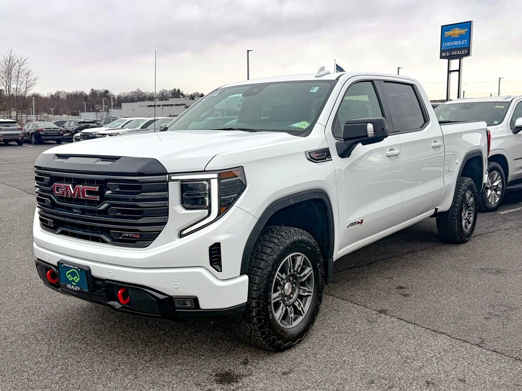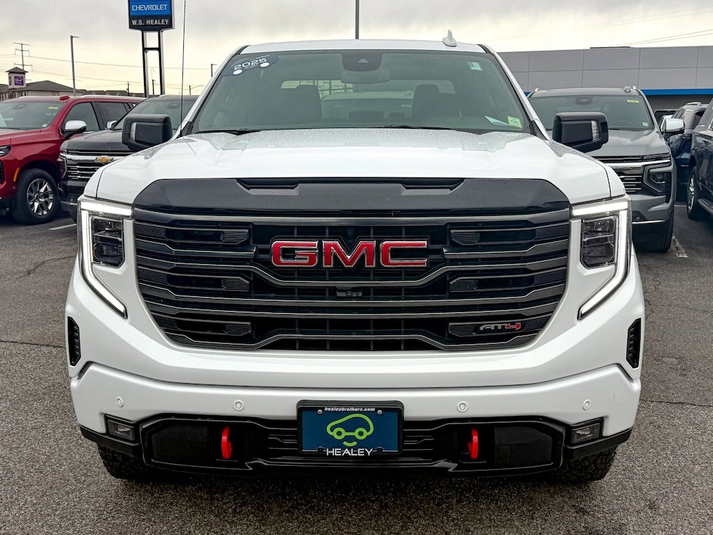 Certified. Summit White 2025 GMC Sierra 1500 AT4 4WD 10-Speed Automatic EcoTec3 6.2L V8 10-Way Power Driver Seat Adjuster w/Lumbar, 10-Way Power Passenger Seat Adjuster w/Lumbar, 120-Volt Bed Mounted Power Outlet, 120-Volt Interior Power Outlet, 170 Amp Alternator, 18 x 8.5 Machined Aluminum Wheels, 2 Charge/Data USB Ports Inside Center Console, 2 Type-C Charge-Only Rear USB Ports, 2 USB Ports, 220 Amp Alternator, 3.23 Rear Axle Ratio, 4-Wheel Disc Brakes, 7 Speakers, ABS brakes, Air Conditioning, Alloy wheels, AM/FM radio: SiriusXM with 360L, Apple CarPlay/Android Auto, Auto High-beam Headlights, Auto-dimming door mirrors, Auto-dimming Rear-View mirror, Auto-Locking Rear Differential, Automatic Emergency Braking, Automatic temperature control, Auxiliary External Transmission Oil Cooler, Black Chrome Grille Insert Bars, Block heater, Brake assist, Buckle to Drive, Bumpers: body-color, Color-Keyed Carpeting Floor Covering, Compass, Deep-Tinted Glass, Delay-off headlights, Driver door bin, Driver Memory, Driver vanity mirror, Dual Active Exhaust, Dual front impact airbags, Dual front side impact airbags, Electric Rear-Window Defogger, Electronic Stability Control, Emergency communication system: OnStar, External Engine Oil Cooling, Floor-Mounted Center Console, Following Distance Indicator, Forward Collision Alert, Front anti-roll bar, Front Bucket Seats, Front Center Armrest, Front dual zone A/C, Front fog lights, Front License Plate Kit, Front Pedestrian Braking, Front Prem Floor Liners w/Removable Carpet Insert, Front Rain-Sensing Wipers, Front reading lights, Front wheel independent suspension, Fully automatic headlights, HD Surround Vision, Heated 2nd Row Outboard Seats, Heated door mirrors, Heated Driver & Front Outboard Passenger Seating, Heated front seats, Heated rear seats, Heated steering wheel, Heavy-Duty Air Filter, Hill Descent Control, Hitch Guidance, Hitch View, Illuminated entry, In-Vehicle Trailering System App, Integrated Trailer Brake Controller, IntelliBeam Automatic High Beam On/Off, Keyless Open & Start, Lane Keep Assist w/Lane Departure Warning, LED Cargo Area Lighting, Low tire pressure warning, Memory seat, Navigation System, Occupant sensing airbag, Off-Road Suspension, OnStar Services Capable, Outside temperature display, Overhead airbag, Overhead console, Panic alarm, Passenger door bin, Passenger vanity mirror, Perforated Front Leather Seat Trim, Perimeter Lighting, Power Door Locks, Power door mirrors, Power driver seat, Power Front Passenger Windows w/Express Up/Down, Power Front Windows w/Driver Express Up/Down, Power passenger seat, Power Rake & Telescoping Steering Column, Power Rear Windows w/Express Down, Power steering, Power windows, Preferred Equipment Group 4SB, Premium Bose 7-Speaker Sound System, Push Button Start, Radio data system, Radio: Premium GMC Infotainment Audio System, Rain sensing wipers, Rear Cross Traffic Braking, Rear Pedestrian Detection, Rear Prem Floor Liners w/Removable Carpet Insert, Rear reading lights, Rear seat center armrest, Rear step bumper, Rear Wheelhouse Liners, Rear window defroster, Red Recovery Hooks, Remote keyless entry, Remote Vehicle Starter System, Safety Alert Seat, Security system, SiriusXM w/360L Trial Subscription, Speed control, Speed-sensing steering, Split folding rear seat, Spray-On Pickup Bedliner w/GMC Logo, Steering Wheel Audio Controls, Steering wheel mounted audio controls, Tachometer, Telescoping steering wheel, Theft Deterrent System (Unauthorized Entry), Tilt steering wheel, Traction control, Trailer Camera Provisions, Trailer Side Blind Zone Alert, Trailering Package, Trip computer, Ultrasonic Front & Rear Park Assist, Variably intermittent wipers, Ventilated Driver & Front Passenger Seats, Ventilated front seats, Voltmeter, Wheels: 20 x 9 Machined Aluminum, Wi-Fi Hotspot Capable, Wireless Apple CarPlay/Wireless Android Auto, Wireless Charging.