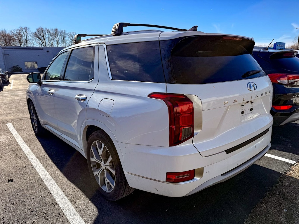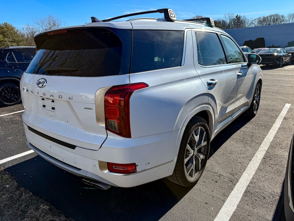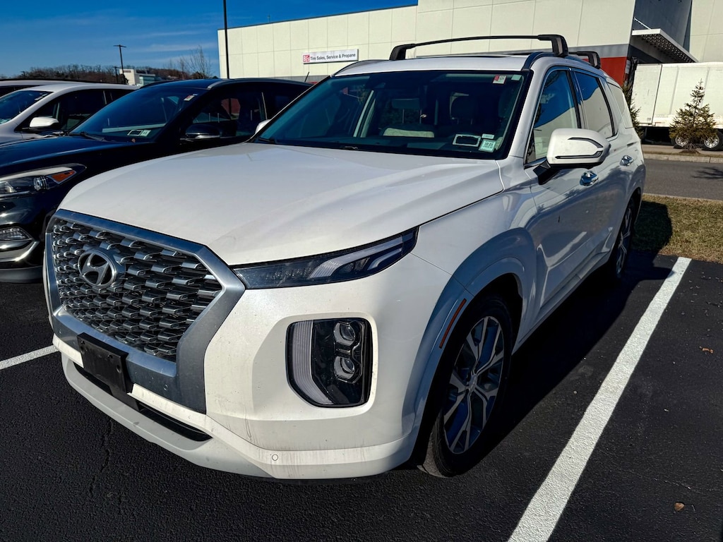 Hyper White 2021 Hyundai Palisade Limited AWD 8-Speed Automatic with SHIFTRONIC V6 12 Speakers, 3.648 Axle Ratio, 3rd row seats: split-bench, 4-Wheel Disc Brakes, ABS brakes, Air Conditioning, Alloy wheels, AM/FM radio: SiriusXM, Apple CarPlay & Android Auto, Auto High-beam Headlights, Auto-dimming Rear-View mirror, Auto-leveling suspension, Automatic temperature control, Brake assist, Bumper Applique, Bumpers: body-color, Cargo Cover/Screen, Cargo Net, Carpeted Floor Mats, Compass, Delay-off headlights, Driver door bin, Driver vanity mirror, Dual front impact airbags, Dual front side impact airbags, Electronic Stability Control, Emergency communication system: Blue Link Connected Car Service (3-year complimentary subscription), First Aid Kit, Four wheel independent suspension, Front anti-roll bar, Front Bucket Seats, Front Center Armrest, Front dual zone A/C, Front reading lights, Fully automatic headlights, Garage door transmitter: HomeLink, harman/kardon® Speakers, Heads-Up Display, Heated & Ventilated Front Bucket Seats, Heated door mirrors, Heated front seats, Heated rear seats, Heated steering wheel, Illuminated entry, Knee airbag, Low tire pressure warning, Memory seat, Navigation System, Occupant sensing airbag, Option Group 01, Outside temperature display, Overhead airbag, Overhead console, Panic alarm, Passenger door bin, Passenger vanity mirror, Power door mirrors, Power driver seat, Power Liftgate, Power moonroof, Power passenger seat, Power steering, Power windows, Premium Nappa Leather Seat Trim, Radio data system, Radio: AM/FM/MP3 Premium Audio System, Rain sensing wipers, Rear air conditioning, Rear anti-roll bar, Rear reading lights, Rear window defroster, Rear window wiper, Reclining 3rd row seat, Remote keyless entry, Security system, Speed control, Speed-sensing steering, Split folding rear seat, Spoiler, Steering wheel mounted audio controls, Tachometer, Telescoping steering wheel, Tilt steering wheel, Traction control, Trip computer, Turn signal indicator mirrors, Variably intermittent wipers, Ventilated front seats, Ventilated rear seats, Wheel Locks, Wheels: 20 x 7.5J Split 5-Spoke Machined Alloy.