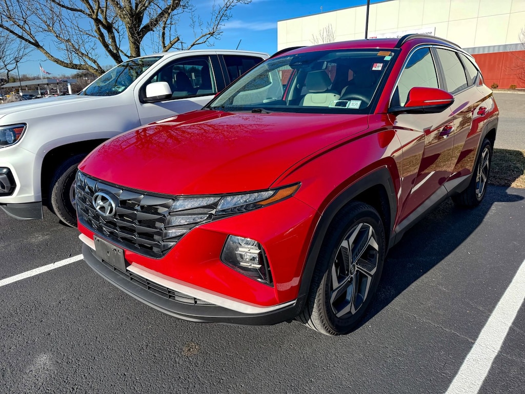 Calypso Red 2023 Hyundai Tucson SEL AWD 8-Speed Automatic with SHIFTRONIC 2.5L I4 DGI DOHC 16V LEV3-ULEV70 187hp AWD, 10.25 Digital Instrument Cluster, 3.648 Axle Ratio, 4-Wheel Disc Brakes, 6 Speakers, ABS brakes, Air Conditioning, All Season Fitted Liners, Alloy wheels, AM/FM radio: SiriusXM, Apple CarPlay & Android Auto, Auto High-beam Headlights, Auto-Dimming Interior Mirror w/Homelink, Brake assist, Bumpers: body-color, Cargo Net, Cargo Tray, Convenience Package, Delay-off headlights, Driver door bin, Driver vanity mirror, Dual Automatic Temperature Control, Dual front impact airbags, Dual front side impact airbags, Electronic Stability Control, Emergency communication system: Blue Link Connected Car Service (3-year complimentary subscription), First Aid Kit, Four wheel independent suspension, Front and Rear Mudguards, Front anti-roll bar, Front Bucket Seats, Front Center Armrest, Front reading lights, Fully automatic headlights, H-Tex Seat Trim, Heated door mirrors, Heated Front Bucket Seats, Heated front seats, Illuminated entry, Leather-Wrapped Shift Knob, Leather-Wrapped Steering Wheel, LED Interior Lights (Room, Map), Low tire pressure warning, Occupant sensing airbag, Option Group 02, Outside temperature display, Overhead airbag, Overhead console, Panic alarm, Passenger door bin, Passenger vanity mirror, Power door mirrors, Power driver seat, Power Liftgate, Power steering, Power Sunroof, Power windows, Radio data system, Radio: AM/FM/HD/SiriusXM Audio System, Rear anti-roll bar, Rear Bumper Applique, Rear seat center armrest, Rear window defroster, Rear window wiper, Remote keyless entry, Roof rack: rails only, Security system, Speed control, Split folding rear seat, Spoiler, Stain & Odor Resistant Cloth Seat Trim, Steering wheel mounted audio controls, Tachometer, Telescoping steering wheel, Tilt steering wheel, Traction control, Trip computer, Turn signal indicator mirrors, Ultrasonic Rear Occupant Alert, Variably intermittent wipers, Wheel Locks, Wheels: 17 x 7.0J Alloy, Wheels: 19 x 7.5J Machine-Face Finish Alloy, AWD.