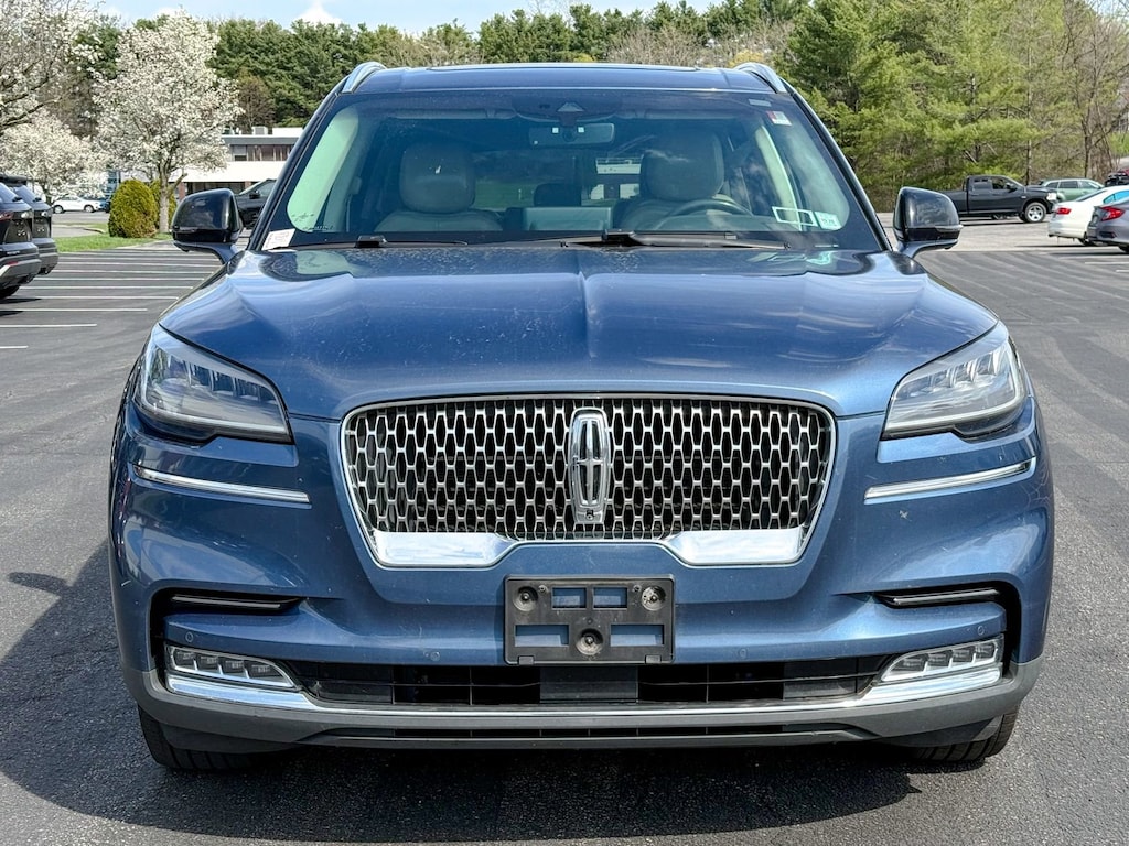 Diamond 2020 Lincoln Aviator Reserve AWD 10-Speed Automatic 3.0L V6 14 Speakers, 2nd Row Bench Seat, 3.58 Axle Ratio, 3rd row seats: split-bench, 4-Wheel Disc Brakes, ABS brakes, Active Park Assist Plus, Adaptive Cruise Control w/Traffic Jam Assist, Adaptive suspension, Air Conditioning, Alloy wheels, AM/FM radio: SiriusXM, Audio memory, Auto High-beam Headlights, Auto-dimming door mirrors, Auto-dimming Rear-View mirror, Automatic temperature control, Brake assist, Bumpers: body-color, Compass, Delay-off headlights, Driver door bin, Driver vanity mirror, Dual front impact airbags, Dual front side impact airbags, Electronic Stability Control, Elements Package Plus, Emergency communication system: SYNC 3 911 Assist, Equipment Group 201A, Evasive Steering Assist, Four wheel independent suspension, Front anti-roll bar, Front Bucket Seats, Front Center Armrest, Front dual zone A/C, Front fog lights, Front reading lights, Fully automatic headlights, Garage door transmitter, Heated door mirrors, Heated front seats, Heated Steering Wheel, Heated VisioBlade Wipers, Heated/Ventilated 2nd Row Outboard Seats, Heated/Ventilated Driver & Passenger Seats, HVAC memory, Illuminated entry, Knee airbag, Lincoln Co-Pilot360 Plus, Low tire pressure warning, Memory seat, Navigation System, Occupant sensing airbag, Outside temperature display, Overhead airbag, Overhead console, Panic alarm, Panoramic Vista Roof w/Power Shade, Passenger door bin, Passenger vanity mirror, Power door mirrors, Power driver seat, Power Liftgate, Power passenger seat, Power steering, Power windows, Premium Leather Enhanced Micro-Perforated Seats, Radio data system, Radio: Revel AM/FM Audio System w/14 Speakers, Rain sensing wipers, Rear air conditioning, Rear anti-roll bar, Rear audio controls, Rear dual zone A/C, Rear reading lights, Rear window defroster, Rear window wiper, Remote keyless entry, Reverse Brake Assist, Security system, SiriusXM Radio, Speed control, Speed-Sensitive Wipers, Split folding rear seat, Spoiler, Steering wheel memory, Steering wheel mounted A/C controls, Steering wheel mounted audio controls, SYNC 3 Communication & Entertainment System, Tachometer, Telescoping steering wheel, Tilt steering wheel, Traction control, Trip computer, Turn signal indicator mirrors, Variably intermittent wipers, Ventilated front seats, Wheels: 20 Bright Machined Aluminum.