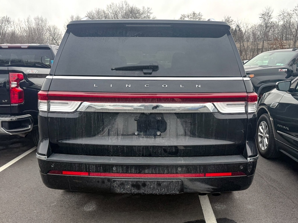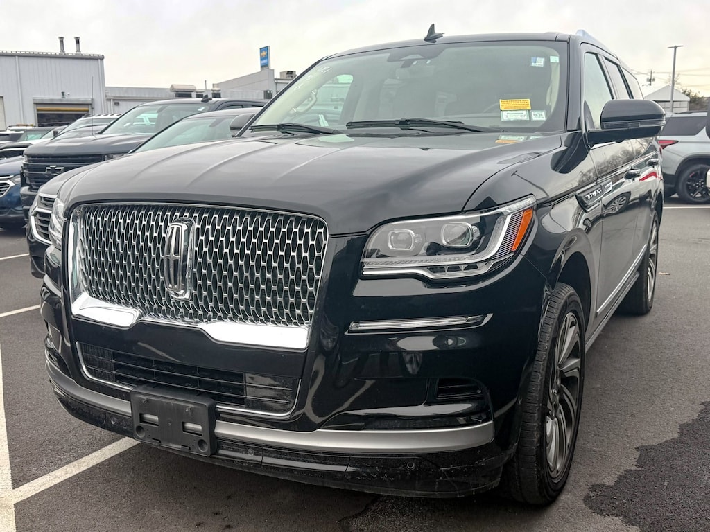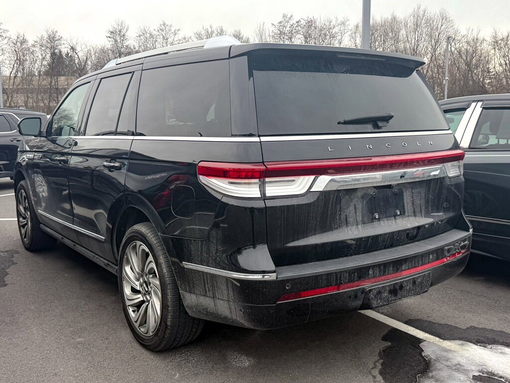 Infinite Black Metallic Clearcoat 2022 Lincoln Navigator Reserve 4WD 10-Speed Automatic V6 Illuminated 1st & 2nd Row Seat Belts, Lincoln Lit Star in Grille, Luxury Package, Perfect Position Seats (30-Way) w/Active Motion, Power moonroof: Panoramic Vista Roof, Revel Ultima 3D Audio System w/28 Speakers, 14 Speakers, 2nd Row Htd/Vent Enhanced Massage Seats w/Console, 3.73 Axle Ratio, 3rd row seats: split-bench, 4-Wheel Disc Brakes, ABS brakes, Adaptive suspension, Adjustable pedals, Air Conditioning, All-Weather Floor Liners w/Carpet Floor Mats, Alloy wheels, AM/FM radio: SiriusXM with 360L, Audio memory, Auto High-beam Headlights, Auto Start-Stop Technology, Auto tilt-away steering wheel, Auto-dimming door mirrors, Auto-dimming Rear-View mirror, Auto-leveling suspension, Automatic temperature control, Bodyside moldings, Brake assist, Bumpers: body-color, Compass, Delay-off headlights, Driver door bin, Driver vanity mirror, Driver's Seat Mounted Armrest, Dual front impact airbags, Dual front side impact airbags, Electronic Stability Control, Emergency communication system: 911 Assist, Equipment Group 201A Reserve I, Exterior Parking Camera Rear, Four wheel independent suspension, Front anti-roll bar, Front Bucket Seats, Front dual zone A/C, Front fog lights, Front reading lights, Fully automatic headlights, Garage door transmitter, Genuine wood dashboard insert, Genuine wood door panel insert, Head restraints memory, Heads-Up Display, Heated door mirrors, Heated front seats, Heated rear seats, Heated steering wheel, HVAC memory, Illuminated entry, Leather steering wheel, Low tire pressure warning, Memory seat, Navigation system: Connected Navigation (3-year trial), Occupant sensing airbag, Outside temperature display, Overhead airbag, Overhead console, Panic alarm, Passenger door bin, Passenger seat mounted armrest, Passenger vanity mirror, Pedal memory, Power adjustable rear head restraints, Power door mirrors, Power driver seat, Power Liftgate, Power passenger seat, Power steering, Power windows, Prem Lthr Auto Htd/Ventiltd Perfect Position Seats, Radio data system, Radio: Revel AM/FM/HD/MP3 Audio System, Rain sensing wipers, Rear air conditioning, Rear anti-roll bar, Rear audio controls, Rear reading lights, Rear window defroster, Rear window wiper, Reclining 3rd row seat, Remote keyless entry, Security system, SiriusXM w/360L, Speed control, Speed-sensing steering, Speed-Sensitive Wipers, Split folding rear seat, Spoiler, Steering wheel memory, Steering wheel mounted audio controls, SYNC 4 Communications & Entertainment System, Tachometer, Telescoping steering wheel, Tilt steering wheel, Traction control, Trip computer, Turn signal indicator mirrors, Variably intermittent wipers, Ventilated front seats, Ventilated rear seats, Voice-Activated Touchscreen Navigation System, Wheels: 22 Bright Machined Aluminum, One Owner, Illuminated 1st & 2nd Row Seat Belts, Lincoln Lit Star in Grille, Luxury Package, Perfect Position Seats (30-Way) w/Active Motion, Power moonroof: Panoramic Vista Roof, Revel Ultima 3D Audio System w/28 Speakers.