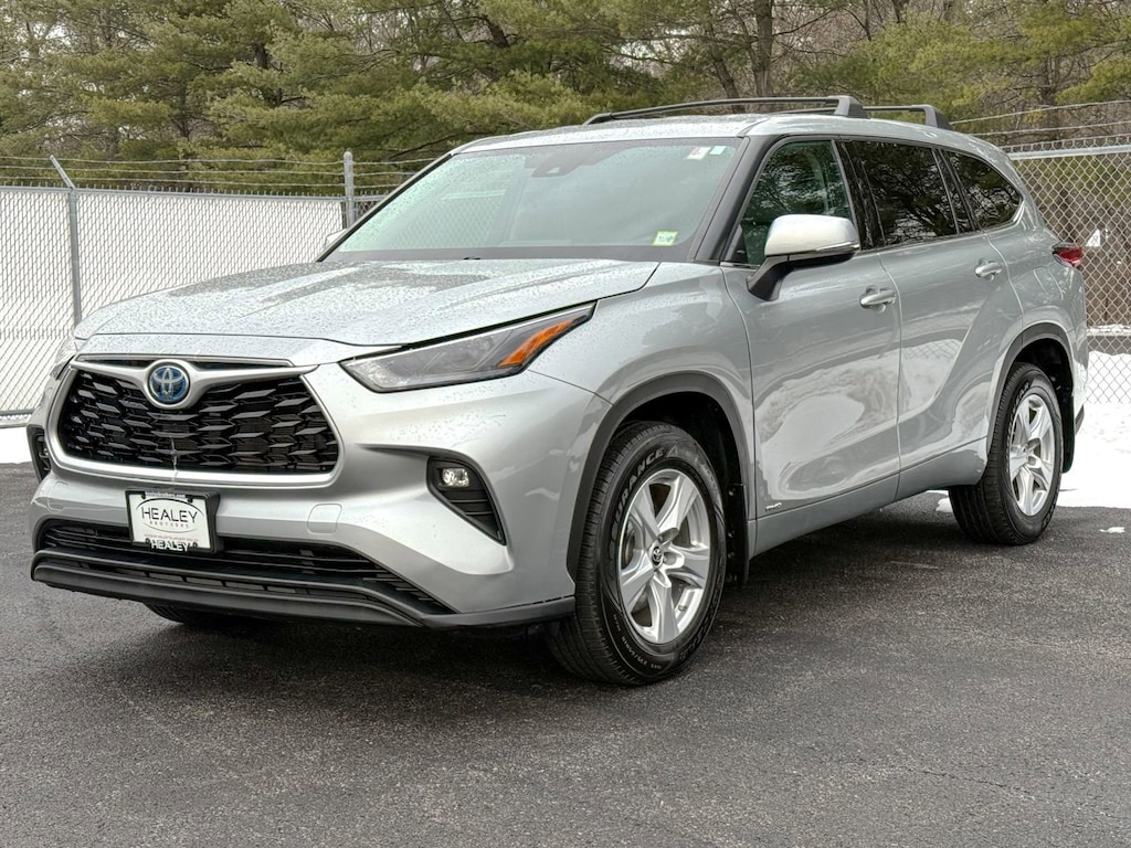 Celestial Silver Metallic 2022 Toyota Highlander Hybrid LE AWD eCVT 2.5L I4 PDI Hybrid DOHC 16V LEV3-SULEV30 186hp 2.5L I4 PDI Hybrid DOHC 16V LEV3-SULEV30 186hp, 18 Painted Alloy Wheels, 3rd row seats: split-bench, 4-Wheel Disc Brakes, 6 Speakers, ABS brakes, Air Conditioning, Alloy wheels, AM/FM radio: SiriusXM, Apple CarPlay/Android Auto, Auto High-beam Headlights, Automatic temperature control, Axle Ratio TBD, Brake assist, Bumpers: body-color, Delay-off headlights, Driver door bin, Driver vanity mirror, Dual front impact airbags, Dual front side impact airbags, Electronic Stability Control, Emergency communication system: Safety Connect with 1-year trial, Exterior Parking Camera Rear, Fabric Seat Trim, Four wheel independent suspension, Front anti-roll bar, Front Bucket Seats, Front Center Armrest, Front dual zone A/C, Front fog lights, Front reading lights, Fully automatic headlights, Heated door mirrors, Illuminated entry, Knee airbag, Leather Shift Knob, Low tire pressure warning, Occupant sensing airbag, Outside temperature display, Overhead airbag, Overhead console, Panic alarm, Passenger door bin, Passenger vanity mirror, Power door mirrors, Power driver seat, Power Liftgate, Power steering, Power windows, Radio: Audio Plus System, Rear air conditioning, Rear anti-roll bar, Rear reading lights, Rear seat center armrest, Rear window defroster, Rear window wiper, Reclining 3rd row seat, Remote keyless entry, Security system, Speed control, Speed-sensing steering, Split folding rear seat, Spoiler, Steering wheel mounted audio controls, Telescoping steering wheel, Tilt steering wheel, Traction control, Trip computer, Turn signal indicator mirrors, Variably intermittent wipers, 2.5L I4 PDI Hybrid DOHC 16V LEV3-SULEV30 186hp.