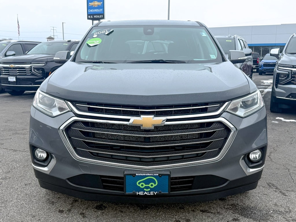 Certified. Satin Steel Metallic 2021 Chevrolet Traverse LT 1LT AWD 9-Speed Automatic 3.6L V6 SIDI VVT Automatic Emergency Braking, Automatic Heated Steering Wheel, Chevy Safety Assist, Following Distance Indicator, Forward Collision Alert, Front Pedestrian Braking, Heavy-Duty Cooling System, Hitch Guidance w/Hitch View, IntelliBeam Auto High Beam Control Headlamps, Lane Keep Assist w/Lane Departure Warning, Trailering Assist Guidelines, Trailering Equipment, 3.49 Axle Ratio, 3rd row seats: split-bench, 4-Wheel Disc Brakes, 6 Speakers, 7-Passenger Seating (2-2-3 Seating Configuration), ABS brakes, Air Conditioning, Alloy wheels, AM/FM radio: SiriusXM, Apple CarPlay/Android Auto, Automatic temperature control, Brake assist, Bumpers: body-color, Compass, Custom Molded Front & Rear Splash Guards (LPO), Delay-off headlights, Driver door bin, Driver vanity mirror, Dual front impact airbags, Dual front side impact airbags, Electronic Stability Control, Emergency communication system: OnStar and Chevrolet connected services capable, Four wheel independent suspension, Front anti-roll bar, Front Bucket Seats, Front Center Armrest, Front dual zone A/C, Front fog lights, Front License Plate Bracket Mounting Package, Front reading lights, Fully automatic headlights, Garage door transmitter, Heated door mirrors, Heated front seats, High-Intensity Discharge Headlights, Illuminated entry, Leather steering wheel, Low tire pressure warning, Occupant sensing airbag, Outside temperature display, Overhead airbag, Overhead console, Panic alarm, Passenger door bin, Passenger vanity mirror, Power door mirrors, Power driver seat, Power Liftgate, Power steering, Power windows, Preferred Equipment Group 1LT, Premium Cloth Seat Trim, Radio data system, Radio: Chevrolet Infotainment 3 Plus System, Rear air conditioning, Rear anti-roll bar, Rear reading lights, Rear window defroster, Rear window wiper, Remote keyless entry, Roof rack: rails only, Security system, SiriusXM w/360L, Speed control, Speed-sensing steering, Spoiler, Steering wheel mounted audio controls, Tachometer, Telescoping steering wheel, Tilt steering wheel, Traction control, Trip computer, Turn signal indicator mirrors, Variably intermittent wipers, Voltmeter, Wheels: 18 Bright Silver Painted Aluminum, One Owner, Automatic Emergency Braking, Automatic Heated Steering Wheel, Chevy Safety Assist, Following Distance Indicator, Forward Collision Alert, Front Pedestrian Braking, Heavy-Duty Cooling System, Hitch Guidance w/Hitch View, IntelliBeam Auto High Beam Control Headlamps, Lane Keep Assist w/Lane Departure Warning, Trailering Assist Guidelines, Trailering Equipment.