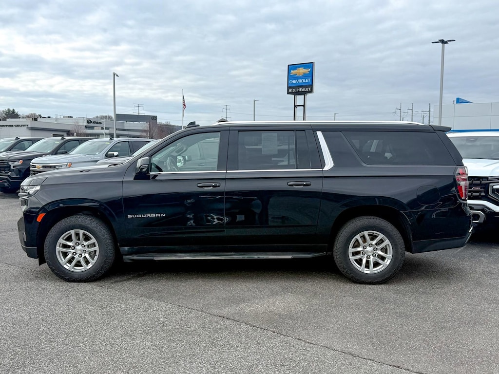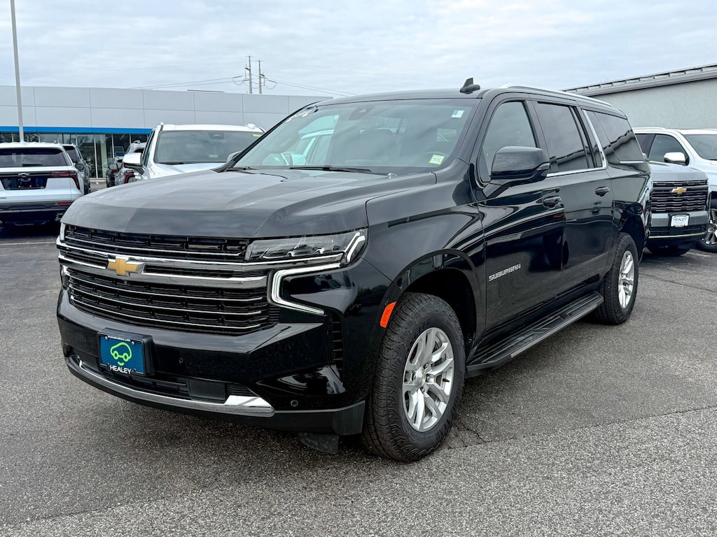 Certified. Black 2022 Chevrolet Suburban LT 4WD 10-Speed Automatic with Overdrive EcoTec3 5.3L V8 2nd Row Pwr Release 60/40 Split-Folding Bench Seat, 3rd Row 60/40 Power-Folding Split-Bench, Driver Alert Package, HD Surround Vision, Heated 2nd Row Outboard Seats, Heated Steering Wheel, Lane Change Alert w/Side Blind Zone Alert, Luxury Package, Memory Settings, Outside Heated Power-Adjustable Mirrors, Power Tilt & Telescopic Steering Column, Rear Cross Traffic Alert, Rear Pedestrian Alert, 10-Way Power Driver & Passenger Seat Adjusters, 1st & 2nd Row Color-Keyed Carpeted Floor Mats, 3.23 Rear Axle Ratio, 3rd row seats: split-bench, 4-Wheel Disc Brakes, 9 Speakers, ABS brakes, Air Conditioning, Alloy wheels, AM/FM radio: SiriusXM with 360L, Apple CarPlay/Android Auto, Auto High-beam Headlights, Auto-Dimming Inside Rear-View Mirror, Auto-dimming Rear-View mirror, Automatic Stop/Start, Automatic temperature control, Bose 9-Speaker Stereo Audio System Feature, Brake assist, Bright Front & Rear Door Sill Plates, Bumpers: body-color, Color-Keyed Carpeting Floor Covering, Compass, Delay-off headlights, Driver & Front Outboard Passenger Airbags, Driver door bin, Driver vanity mirror, Dual front impact airbags, Dual front side impact airbags, Electronic Stability Control, Emergency communication system: OnStar and Chevrolet connected services capable, Enhanced Driver Information Center, Floor Console w/Storage Area, Four wheel independent suspension, Front & Rear Park Assist, Front anti-roll bar, Front Bucket Seats, Front Center Armrest, Front dual zone A/C, Front reading lights, Fully automatic headlights, Garage door transmitter, Hands-Free Rear Power Programmable Liftgate, Heated door mirrors, Heated Driver & Front Passenger Seats, Heated front seats, Illuminated entry, Infotainment Display, Leather steering wheel, Leather-Appointed Seating, Leather-Wrapped Steering Wheel, LED Daytime Running Lamps, License Plate Front Mounting Package, Low tire pressure warning, Memory seat, Memory Settings For Driver, Navigation System, Not Equipped w/Front & Rear Park Assist, Not Equipped w/Steering Column Lock, Occupant sensing airbag, Outside temperature display, Overhead airbag, Overhead console, Panic alarm, Passenger door bin, Passenger vanity mirror, Power door mirrors, Power driver seat, Power Liftgate, Power passenger seat, Power steering, Power windows, Preferred Equipment Group 1LT, Premium audio system: Chevrolet Infotainment 3 Premium, Premium Smooth Ride Suspension, Radio: Chevrolet Infotainment 3 Premium System, Rain sensing wipers, Rear air conditioning, Rear anti-roll bar, Rear reading lights, Rear seat center armrest, Rear window defroster, Rear window wiper, Remote keyless entry, Remote Start, Roof rack: rails only, Security system, SiriusXM Radio w/360L, Speed control, Speed-sensing steering, Split folding rear seat, Spoiler, Start/Stop System Disable Button, Steering wheel mounted audio controls, Tachometer, Telescoping steering wheel, Tilt steering wheel, Traction control, Trip computer, Universal Home Remote, Variably intermittent wipers, Voltmeter, Wheels: 18 x 8.5 Bright Silver Painted Aluminum, Wireless Charging, One Owner, 2nd Row Pwr Release 60/40 Split-Folding Bench Seat, 3rd Row 60/40 Power-Folding Split-Bench, Driver Alert Package, HD Surround Vision, Heated 2nd Row Outboard Seats, Heated Steering Wheel, Lane Change Alert w/Side Blind Zone Alert, Luxury Package, Memory Settings, Outside Heated Power-Adjustable Mirrors, Power Tilt & Telescopic Steering Column, Rear Cross Traffic Alert, Rear Pedestrian Alert.
