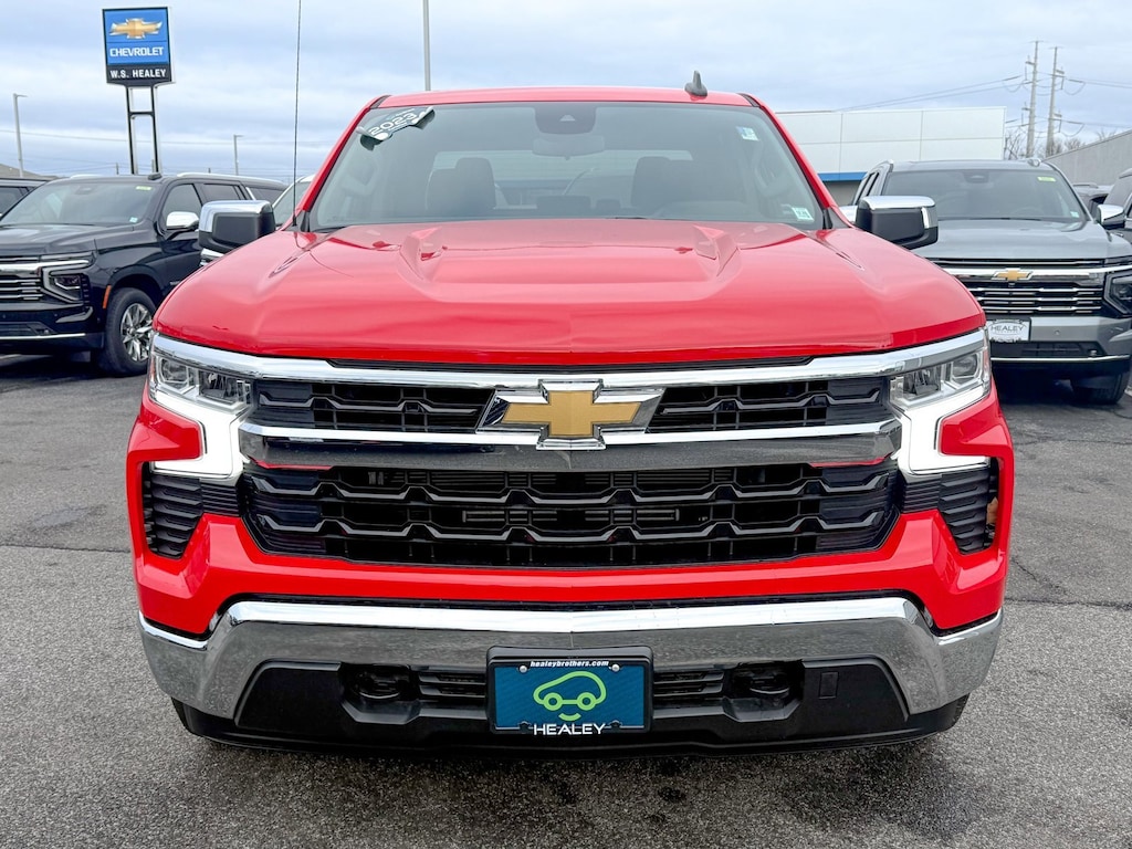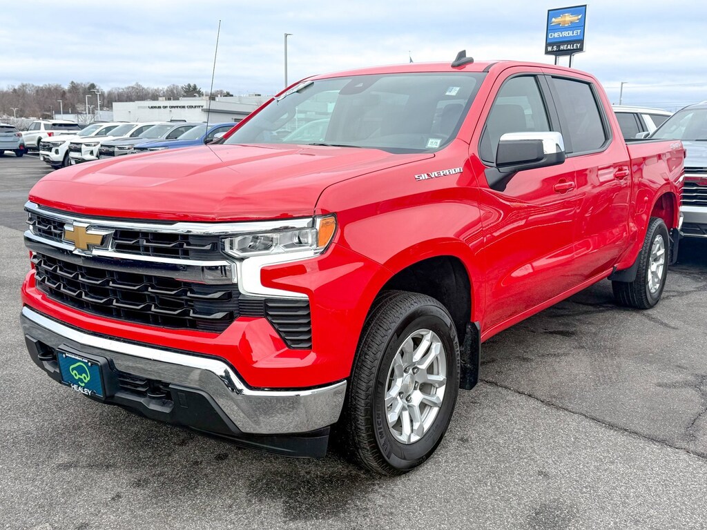 Certified. Red Hot 2023 Chevrolet Silverado 1500 LT 4WD 8-Speed Automatic 2.7L Turbo 10-Way Power Driver Seat w/Lumbar, 120-Volt Instrument Panel Power Outlet, Convenience Package, Dual Rear USB Ports (Charge Only), Dual-Zone Automatic Climate Control, Heated Driver & Front Outboard Passenger Seats, Heated Steering Wheel, Hitch Guidance, Keyless Open & Start, Trailering Package, Wrapped Steering Wheel, 12.3 Multicolor Reconfigurable Digital Display, 120-Volt Bed Mounted Power Outlet, 3.42 Rear Axle Ratio, 4-Wheel Disc Brakes, 40/20/40 Front Split-Bench Seat, 6 Speakers, 6-Speaker Audio System, ABS brakes, Air Conditioning, All-Star Edition, Alloy wheels, AM/FM radio: SiriusXM with 360L, Apple CarPlay/Android Auto, Auto High-beam Headlights, Auto-Locking Rear Differential, Automatic Emergency Braking, Automatic temperature control, Bluetooth® For Phone, Brake assist, Bumpers: chrome, Chevrolet Connected Access Capable, Chrome Mirror Caps, Cloth Seat Trim, Color-Keyed Carpeting Floor Covering, Compass, Deep-Tinted Glass, Delay-off headlights, Driver door bin, Driver vanity mirror, Dual front impact airbags, Dual front side impact airbags, Electric Rear-Window Defogger, Electrical Steering Column Lock, Electronic Cruise Control, Electronic Stability Control, Following Distance Indicator, Forward Collision Alert, Front anti-roll bar, Front Center Armrest w/Storage, Front dual zone A/C, Front Frame-Mounted Black Recovery Hooks, Front License Plate Kit, Front Pedestrian Braking, Front reading lights, Front wheel independent suspension, Fully automatic headlights, HD Rear Vision Camera, Heated door mirrors, Heated front seats, Heated steering wheel, Illuminated entry, IntelliBeam Automatic High Beam On/Off, Lane Keep Assist w/Lane Departure Warning, LED Cargo Area Lighting, Low tire pressure warning, Not Equipped w/Steering Column Lock, Occupant sensing airbag, OnStar & Chevrolet Connected Services Capable, Outside temperature display, Overhead airbag, Overhead console, Panic alarm, Passenger door bin, Passenger vanity mirror, Power door mirrors, Power driver seat, Power Front Windows w/Driver Express Up/Down, Power Front Windows w/Passenger Express Down, Power Rear Windows w/Express Down, Power steering, Power windows, Premium audio system: Chevrolet Infotainment 3 Premium, Radio data system, Radio: Chevrolet Infotainment 3 Premium System, Rear 60/40 Folding Bench Seat (Folds Up), Rear reading lights, Rear step bumper, Rear window defroster, Remote keyless entry, Remote Vehicle Starter System, Security system, SiriusXM w/360L, Speed control, Speed-sensing steering, Split folding rear seat, Standard Suspension Package, Steering Wheel Audio Controls, Steering wheel mounted audio controls, Tachometer, Telescoping steering wheel, Theft Deterrent System (Unauthorized Entry), Tilt steering wheel, Traction control, Trip computer, Variably intermittent wipers, Voltmeter, Wheels: 18 x 8.5 Bright Silver Painted Aluminum, Wi-Fi Hot Spot Capable, Wireless Phone Projection, One Owner, 10-Way Power Driver Seat w/Lumbar, 120-Volt Instrument Panel Power Outlet, Convenience Package, Dual Rear USB Ports (Charge Only), Dual-Zone Automatic Climate Control, Heated Driver & Front Outboard Passenger Seats, Heated Steering Wheel, Hitch Guidance, Keyless Open & Start, Trailering Package, Wrapped Steering Wheel.
