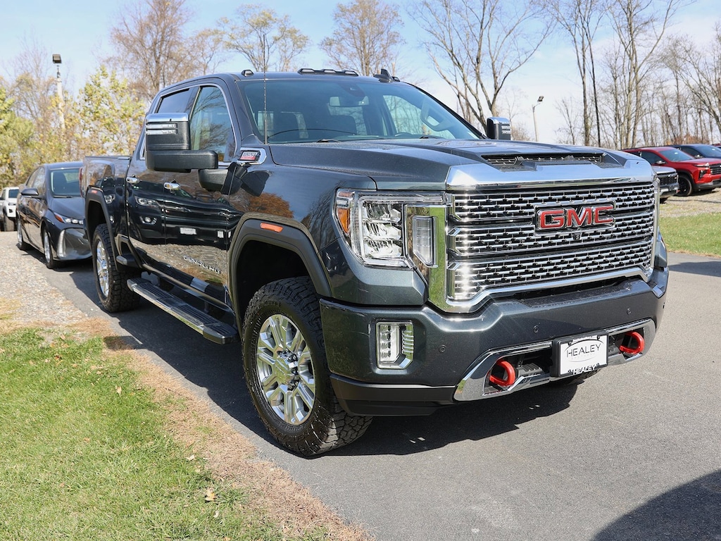 Certified. Hunter Metallic 2022 GMC Sierra 2500HD Denali 4WD 10-Speed Automatic Duramax 6.6L V8 Turbodiesel 10-Way Power Driver Seat Adjuster w/Lumbar, 10-Way Power Passenger Seat Adjuster w/Lumbar, 12-Volt Rear Auxiliary Power Outlet, 120-Volt Bed Mounted Power Outlet, 120-Volt Instrument Panel Power Outlet, 2 USB Ports, 2 USB Ports (1st Row), 2-Speed Active Transfer Case, 220 Amps Alternator, 2nd Row Dual USB Charge-Only Ports, 3.42 Axle Ratio, 3.73 Rear Axle Ratio, 4-Wheel Disc Brakes, 6 Rectangular Chromed Tubular Assist Steps, 7 Speakers, ABS brakes, Air Conditioning, Alloy wheels, AM/FM radio: SiriusXM with 360L, Apple CarPlay/Android Auto, Auto High-beam Headlights, Auto-dimming door mirrors, Auto-dimming Rear-View mirror, Automatic Emergency Braking, Automatic temperature control, Bed View Camera w/2 Trailer Camera Provisions, Bose Premium 7 Speaker Sound System, Brake assist, Bumpers: body-color, Compass, Compass Located In Instrument Cluster, Deep-Tinted Glass, Delay-off headlights, Driver Alert Package I, Driver Alert Package II, Driver door bin, Driver Memory, Driver vanity mirror, Dual front impact airbags, Dual front side impact airbags, Electric Rear-Window Defogger, Electrical Lock Control Steering Column, Electronic Stability Control, Emergency communication system: OnStar and GMC Connected Services capable, Engine Block Heater, Exhaust Brake, Exterior Parking Camera Rear, Floor-Mounted Center Console, Following Distance Indicator, Forge Perforated Leather-Appointed Front Seat Trim, Forward Collision Alert, Front anti-roll bar, Front Bucket Seats, Front Center Armrest, Front Chrome Recovery Hooks, Front dual zone A/C, Front fog lights, Front License Plate Kit, Front reading lights, Front wheel independent suspension, Fully automatic headlights, Garage door transmitter, Genuine wood console insert, Genuine wood door panel insert, GMC Connected Access Capable, HD Surround Vision w/2 Trailer View Camera Provisions, Heated & Ventilated Front Bucket Seats, Heated door mirrors, Heated Driver & Front Outboard Passenger Seats, Heated front seats, Heated steering wheel, Heavy-Duty 80 Amp Battery, Hill Descent Control, Hitch Guidance w/Hitch View, Illuminated entry, In-Vehicle Trailering System App, Integrated Trailer Brake Controller, IntelliBeam Automatic High Beam On/Off, Keyless Open & Start, Lane Change Alert w/Side Blind Zone Alert, Lane Departure Warning System, LED Cargo Area Lighting, LED Smoked Amber Roof Marker Lamps, Low tire pressure warning, Manual Tilt-Wheel/Telescoping Steering Column, Memory seat, Navigation System, Not Equipped w/Front & Rear Park Assist, Not Equipped w/Heated 2nd Row Outboard Seats, Occupant sensing airbag, Off-Road Suspension, OnStar & GMC Connected Services Capable, Outside temperature display, Overhead airbag, Overhead console, Panic alarm, Passenger door bin, Passenger vanity mirror, Pickup Box, Polished Exhaust Tip, Power Door Locks, Power door mirrors, Power driver seat, Power Front Passenger Windows w/Express Up/Down, Power passenger seat, Power Rear Windows w/Express Down, Power Sliding Rear Window w/Defogger, Power steering, Power Sunroof, Power windows, Power Windows w/Driver Express Up/Down, Preferred Equipment Group 5SA, Premium audio system: Premium GMC Infotainment System, Radio: AM/FM w/Prem GMC Infotainment System & Navi, Rear Cross Traffic Alert, Rear reading lights, Rear seat center armrest, Rear step bumper, Rear Wheelhouse Liners, Rear window defroster, Remote keyless entry, Remote Vehicle Starter System, Safety Alert Seat, Security system, Signature Denali Grille, SiriusXM w/360L, Snow Plow Prep/Camper Package, Speed control, Speed-sensing steering, Split folding rear seat, Spray-On Pickup Box Bed Liner w/Denali Logo, Steering Wheel Audio Controls, Steering wheel mounted audio controls, Tachometer, Telescoping steering wheel, Tilt steering wheel, Traction control, Trip computer, Turn signal indicator mirrors, Unaut