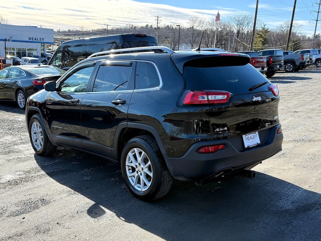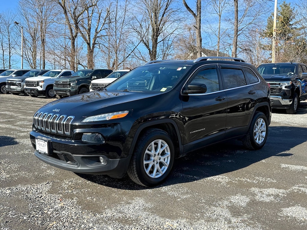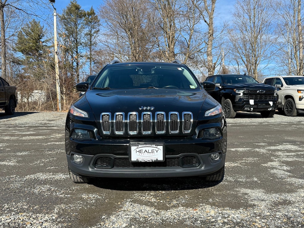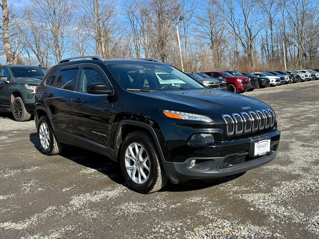 Diamond Black Crystal Pearlcoat 2018 Jeep Cherokee Latitude Plus 4WD 9-Speed 948TE Automatic 2.4L I4 MultiAir 17 x 7 Aluminum Wheels, 3.734 Axle Ratio, 4-Wheel Disc Brakes, 6 Speakers, 600 Amp Maintenance Free Battery, ABS brakes, Active Grille Shutters, Air Conditioning, Alloy wheels, AM/FM radio: SiriusXM, Anti-whiplash front head restraints, Auxiliary Transmission Oil Cooler, Brake assist, Bumpers: body-color, Cloth/Leather/Vinyl Bucket Seats, Cold Weather Group, Compass, Delay-off headlights, Driver door bin, Driver vanity mirror, Dual front impact airbags, Dual front side impact airbags, Electronic Range Select, Electronic Stability Control, Engine Block Heater, Engine Oil Cooler, Exterior Mirrors w/Heating Element, Four wheel independent suspension, Front anti-roll bar, Front Bucket Seats, Front Center Armrest, Front fog lights, Front reading lights, Fully automatic headlights, High intensity discharge headlights: Bi-Xenon, Illuminated entry, Integrated Voice Command w/Bluetooth, Knee airbag, Leather Shift Knob, Low tire pressure warning, Normal Duty Suspension, Occupant sensing airbag, Outside temperature display, Overhead airbag, Overhead console, Panic alarm, ParkView Rear Back-Up Camera, Passenger door bin, Passenger vanity mirror, Power door mirrors, Power driver seat, Power steering, Power windows, Quick Order Package 21D, Radio data system, Radio: Uconnect 3C w/8.4 Display, Rear anti-roll bar, Rear reading lights, Rear seat center armrest, Rear side impact airbag, Rear window defroster, Rear window wiper, Remote keyless entry, Roof rack: rails only, SiriusXM Satellite Radio, Speed control, Speed-sensing steering, Split folding rear seat, Spoiler, Steering wheel mounted audio controls, Tachometer, Telescoping steering wheel, Tilt steering wheel, Traction control, Trip computer, Variably intermittent wipers, Voltmeter.