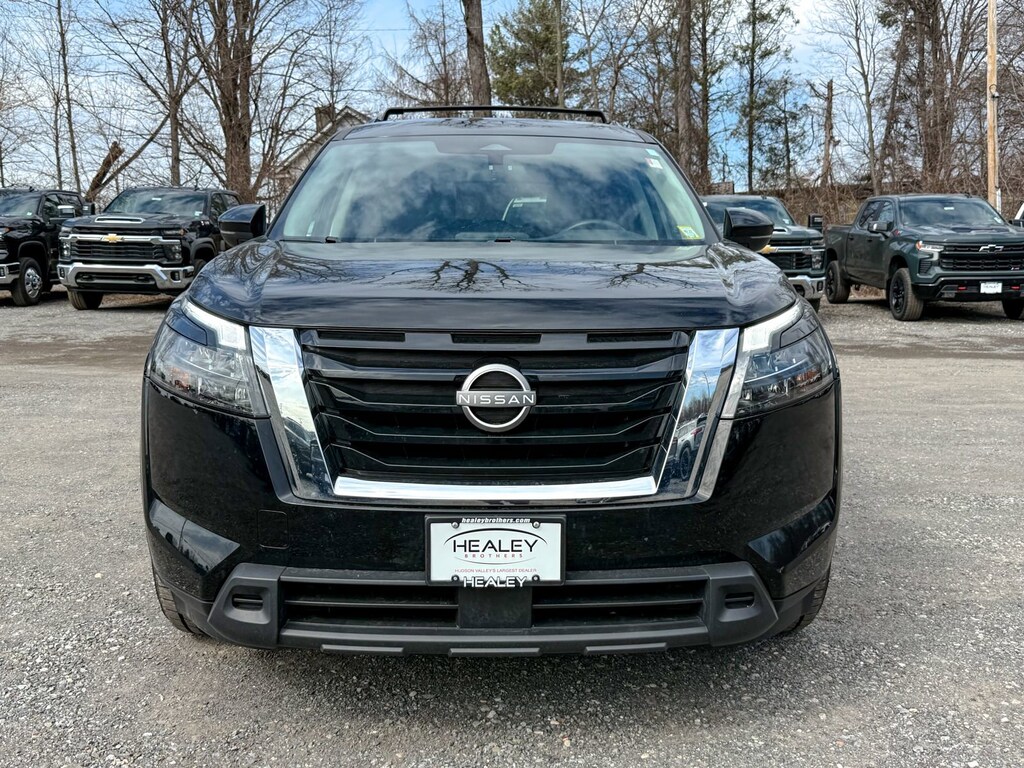 Certified. Super Black 2024 Nissan Pathfinder SV 4WD 9-Speed Automatic 3.5L V6 DOHC 2nd-Row Captain Chairs, 2nd-Row Rear Headrest, 3rd row seats: bench, 4-Wheel Disc Brakes, 6 Speakers, ABS brakes, Air Conditioning, Alloy wheels, AM/FM radio: SiriusXM, Auto High-beam Headlights, Automatic temperature control, Axle Ratio: 4.334, Black Splash Guards (Set of 4), Brake assist, Bumpers: body-color, Captain's Chairs Carpeted Floor Mats (Set of 4), Cargo Area Protector, Cargo Net, Cargo Package, Cloth Seating Surfaces, Cross Bars, Delay-off headlights, Driver door bin, Driver vanity mirror, Dual front impact airbags, Dual front side impact airbags, Electronic Stability Control, Emergency communication system, First Aid Kit, Four wheel independent suspension, Front anti-roll bar, Front Bucket Seats, Front Center Armrest, Front dual zone A/C, Front reading lights, Fully automatic headlights, Heated door mirrors, Heated Front Bucket Seats, Heated front seats, Illuminated entry, Illuminated Kick Plate, Knee airbag, Leather steering wheel, Lighting Package (N92), Low tire pressure warning, NissanConnect featuring Apple CarPlay and Android Auto, Occupant sensing airbag, Outside temperature display, Overhead airbag, Overhead console, Panic alarm, Panoramic Moonroof, Passenger door bin, Passenger vanity mirror, Power door mirrors, Power driver seat, Power Liftgate, Power steering, Power windows, Radio data system, Radio: AM/FM Audio System w/NissanConnect, Rear air conditioning, Rear anti-roll bar, Rear Parking Sensors, Rear reading lights, Rear seat center armrest, Rear side impact airbag, Rear window defroster, Rear window wiper, Reclining 3rd row seat, Remote keyless entry, Security system, Speed control, Speed-sensing steering, Split folding rear seat, Spoiler, Steering wheel mounted audio controls, SV Premium Package, Tachometer, Telescoping steering wheel, Tilt steering wheel, Tow Hitch Receiver & Harness, Traction control, Trip computer, Turn signal indicator mirrors, Variably intermittent wipers, Welcome Lighting, Wheels: 18 x 8J Painted Alloy.Don't be tricked by below market priced vehicles that charge exorbitant documentation and prep fees. Our pricing is fair, concise and the only documentation fee charged is $175. Check our Google reviews and allow our customers to tell you where you should consider purchasing a pre-owned vehicle in the Tri-State area.Nissan Details:* 167 Point Inspection (for Nissan Certified program), 84 Point Inspection (for Certified Select program), 139 Point Inspection (for EV Certified program)* Transferable Warranty (for Nissan Certified program), Transferable Warranty (for Certified Select program)* 7 Year/100,000 Mile Limited Warranty, 24/7 Hour Roadside Assistance, Carfax Vehicle History Report, Plus 1 Year Pre-Paid Maintenance Included. Gas Powered Nissan Models Only. (for Nissan Certified program), 12-Months/12,000 Mile Limited Warranty, 24/7 Hour Roadside Assistance, Carfax Vehicle History Report, Plus 1 Complimentary Service Visit During the First Year of Ownership or First 15,000 Miles, Whichever Comes First. (for Certified Select program), 7-Year/100,000 Mile Limited Warranty, 1 Year Prepaid Maintenance Included in the First Year of Ownership or 15,000 Miles, Whichever Comes First. 100% Electric Nissan Models Only. (for EV Certified program)* Limited Warranty: 12 Month/12,000 Mile (whichever occurs first) (for Certified Select program), 84 Month/100,000 Mile (whichever occurs first) (for EV Certified program), 84 Month/100,000 Mile (whichever occurs first) (for Nissan Certified program)* Vehicle History (for Nissan Certified program)* Warranty Deductible: $100 (for Nissan Certified program), $100 (for Certified Select program)* Roadside Assistance (for Nissan Certified program)